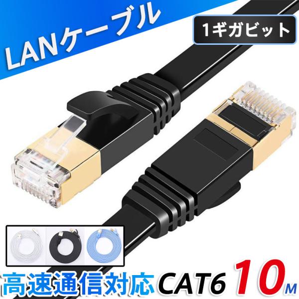 LANケーブル CAT6 10m 1ギガビット 高速通信対応 ツメ折れ防止 ランケーブル カテゴリー6 薄型 フラットケーブル 業務用 企業用 家庭用