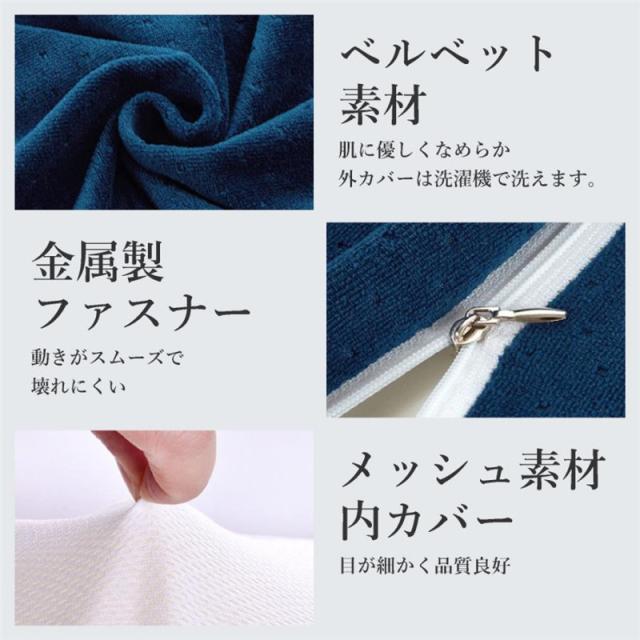 付属のカバーは高級ビロードで肌触りが良く、さらっと快適、洗濯機で洗えます。(枕本体は洗えません)