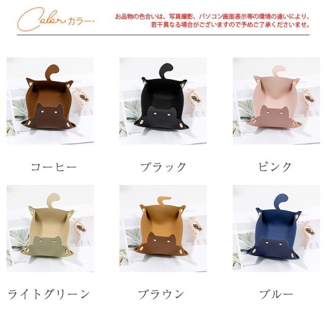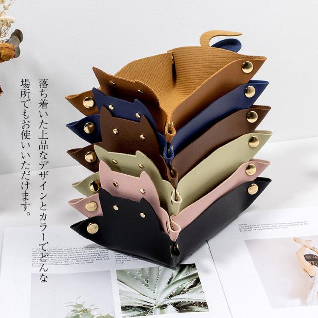レザートレイ 名入れ 猫 アクセサリートレイ 小物入れ PUレザー 小物置き トレー ネコ 長方形 デスク 机 おしゃれ コスメ コースター