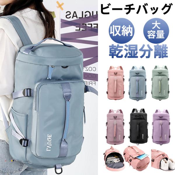 ビーチバッグ レディース リュックサック トートバッグ トラベルバッグ プールバッグ 大容量 乾湿分離 撥水 軽量 水泳 学生 ジム ヨガ 旅行 出張
