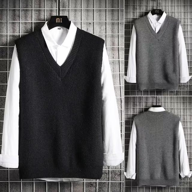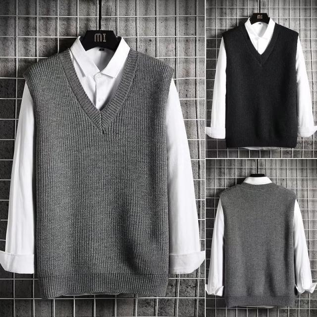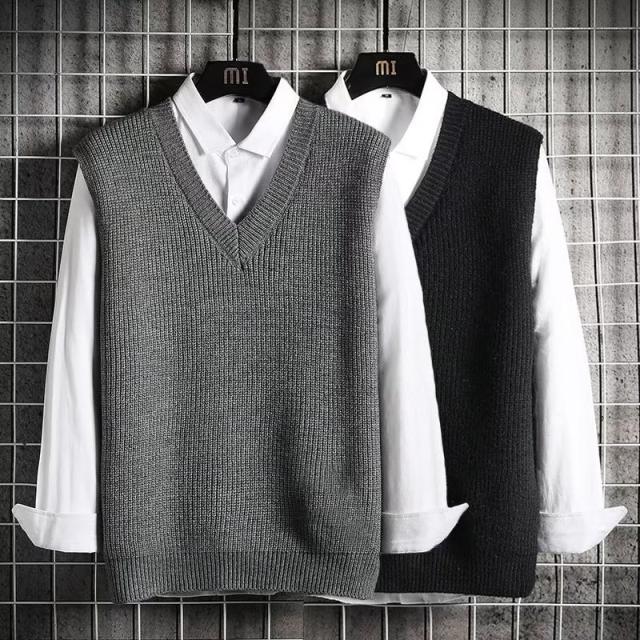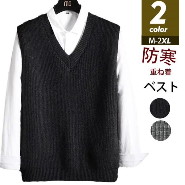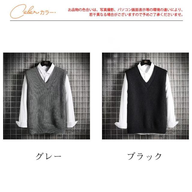 ベスト メンズ ニットベスト プルオーバー Vネック セーター チョッキ ゴルフウェア スクールベスト カジュアル ゆったり 無地 重ね着 秋冬 通勤