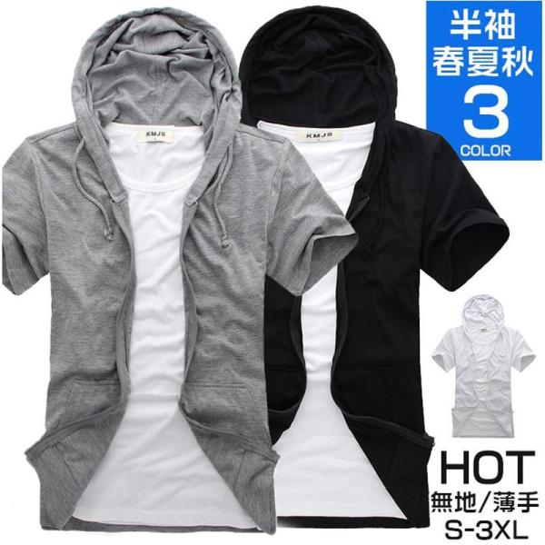 パーカー メンズ 半袖パーカー 羽織り 無地 シャツ レディース ジップアップ カジュアル スポーツ 大きいサイズ 通学 学生 夏用 薄手 おしゃれ