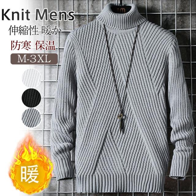 セーター メンズ ニット 長袖 ニットセーター ハイネック タートルネック ケーブルニット リブ プルオーバー 厚手 防寒 無地 着痩せ 冬服 暖かい