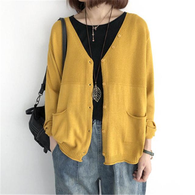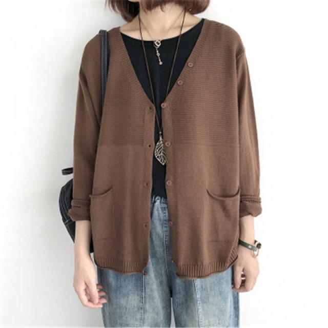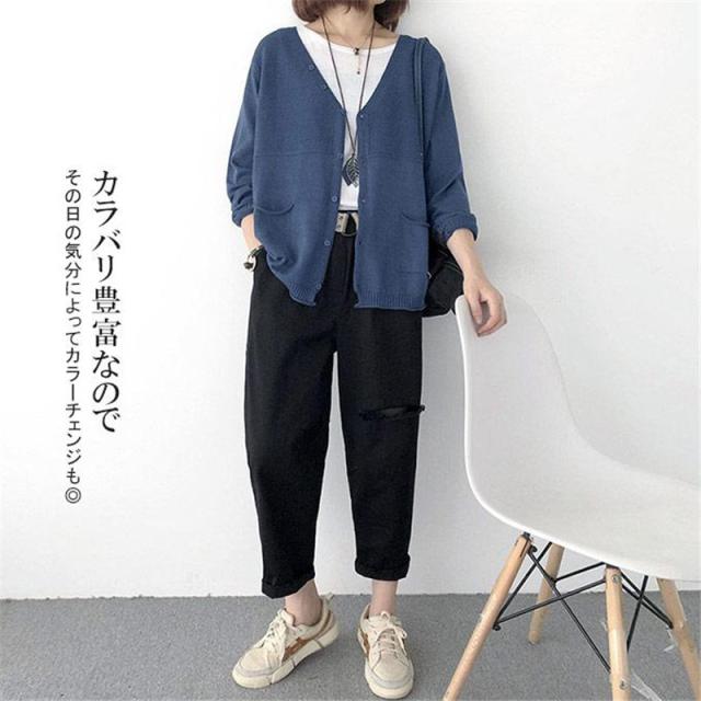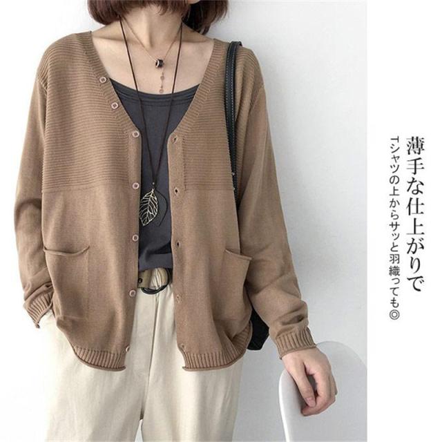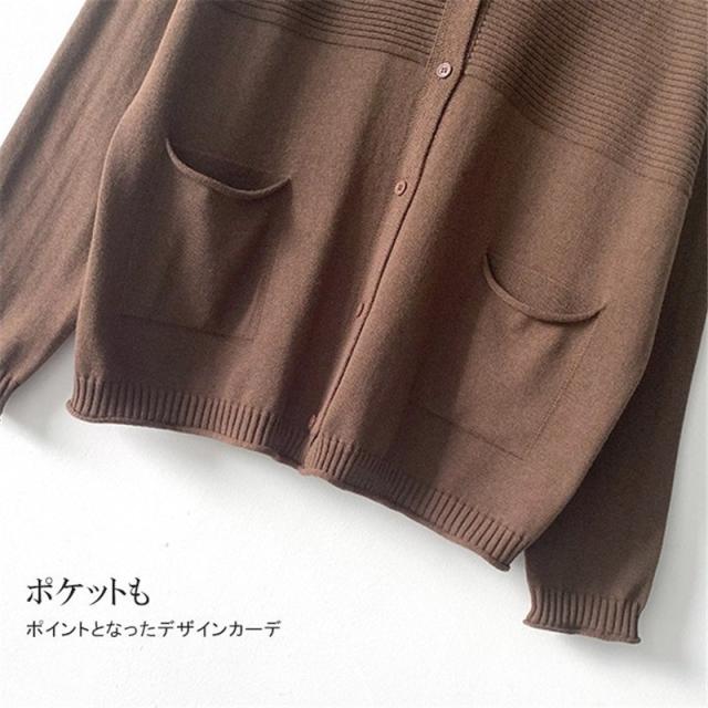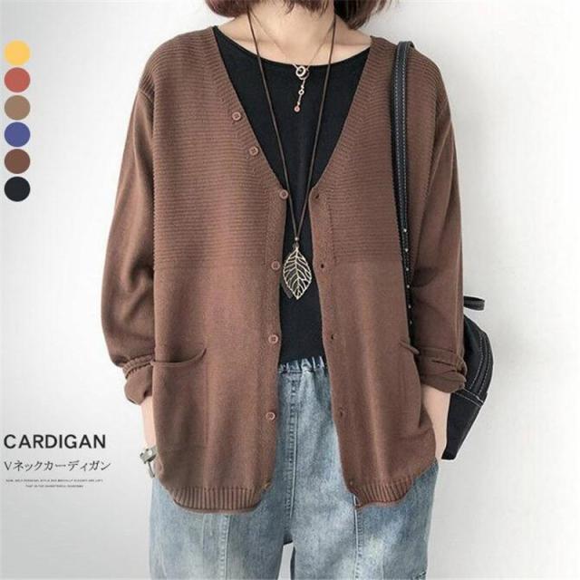ニットカーディガン レディース カーデ 長袖 Vネック ニットセーター 羽織り ポケット付き 冷房対策 ゆったり 体型カバー 薄手 無地 春服 秋物