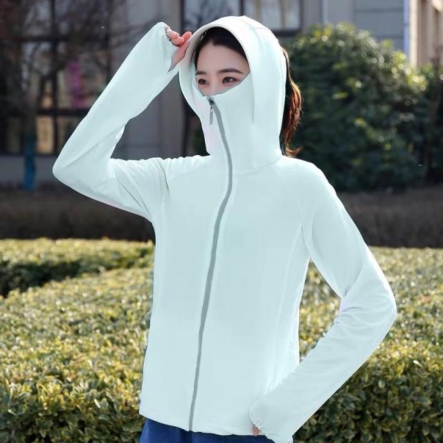ラッシュガード レディース 長袖 冷感素材 UVカット フード付き フェイスカバー付き 指穴付き 無地 紫外線対策 カラー配色 旅行 ドライブ 自転車