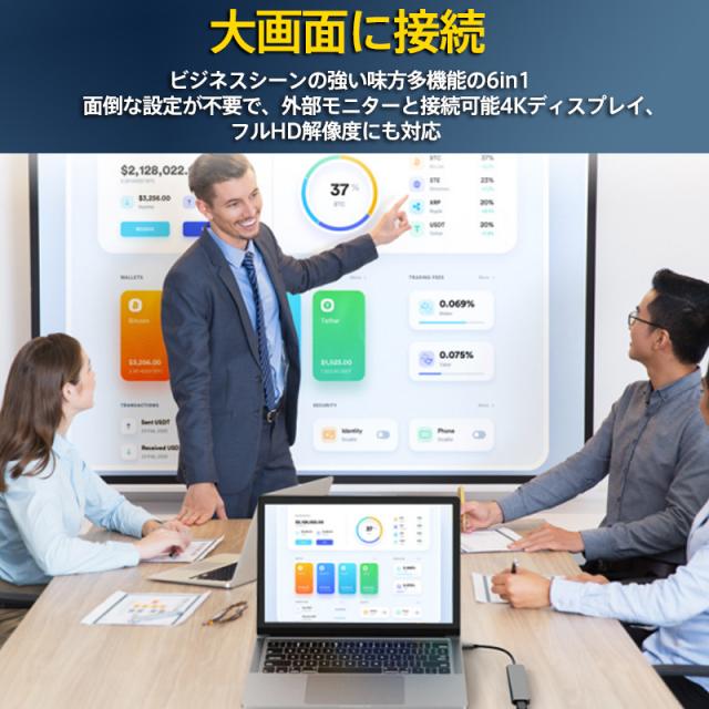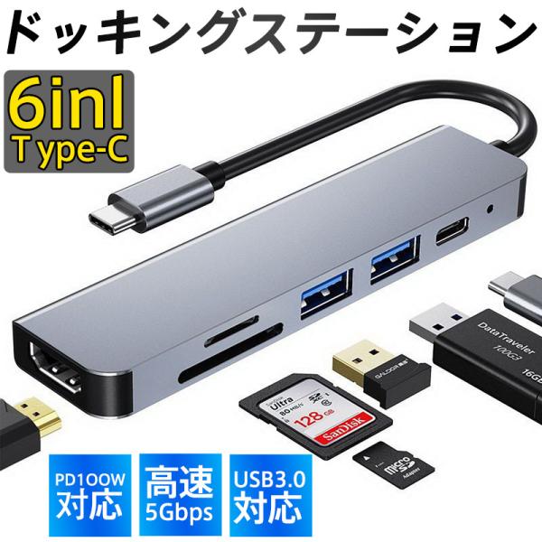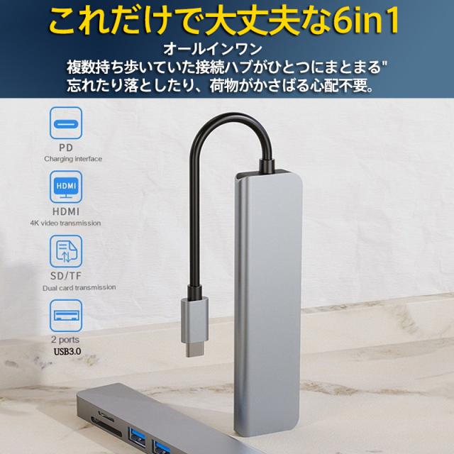 Type-C ハブ ドッキングステーション 6in1 USB3.0 HDMI SD TF カードリーダー 4K PD対応 急速 充電 接続 データ転送
