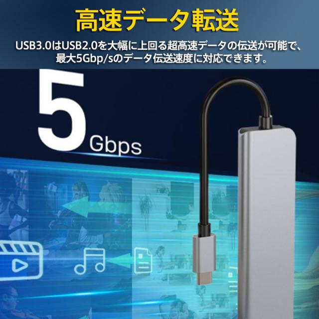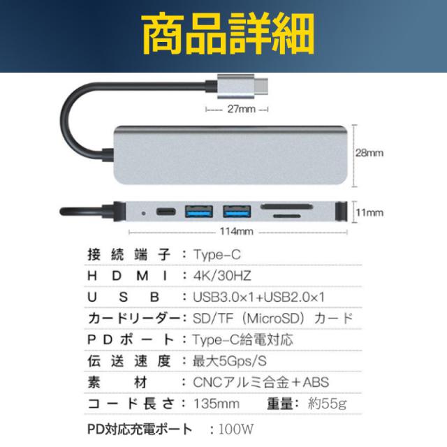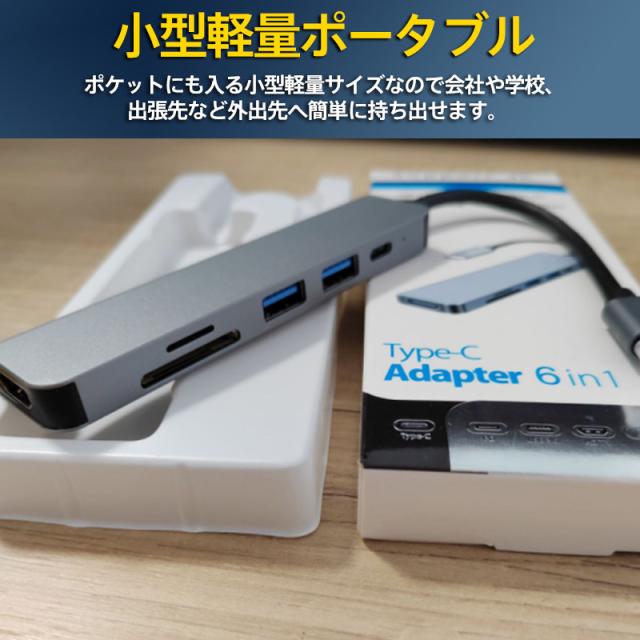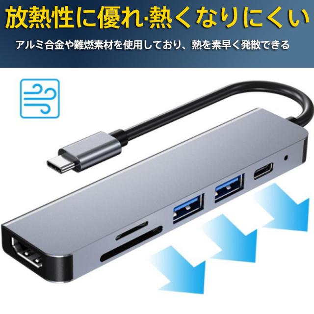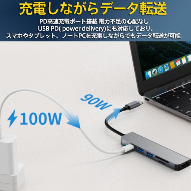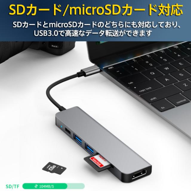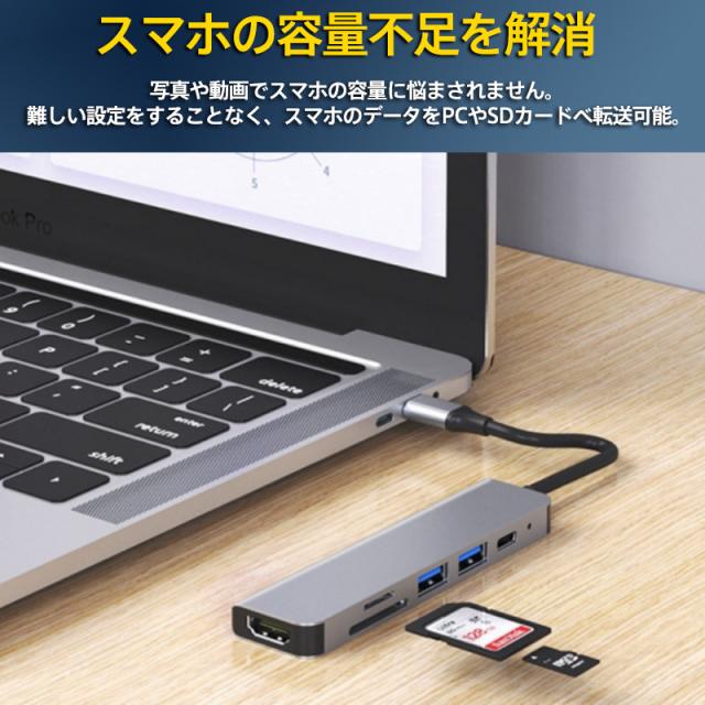 ハブ 6in1 SDカードリーダー ポート 4K PD対応 USB 3.0 USB-C タイプC Macbook Android iPad ノートパソコン 高速転送 音楽 写真