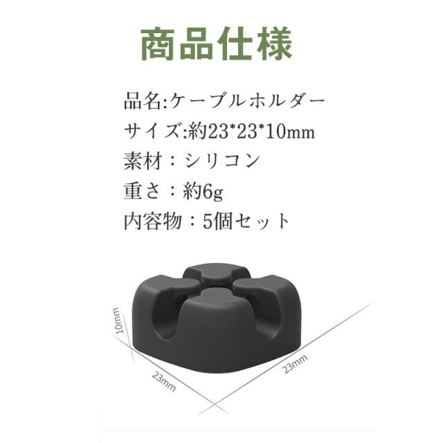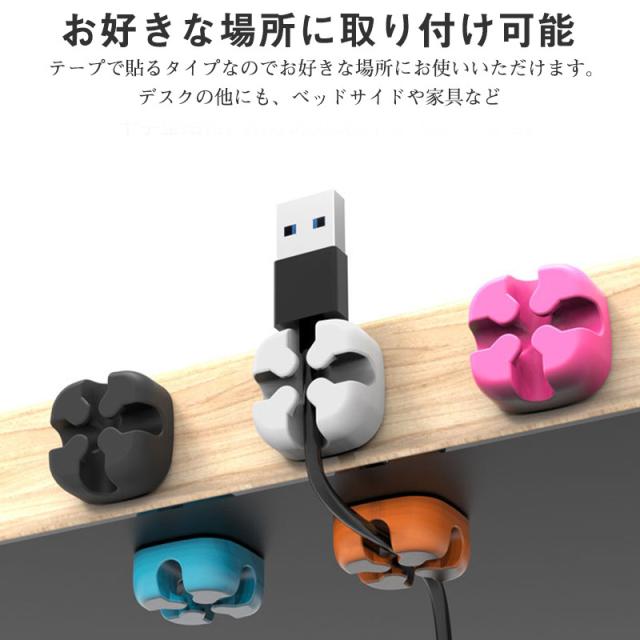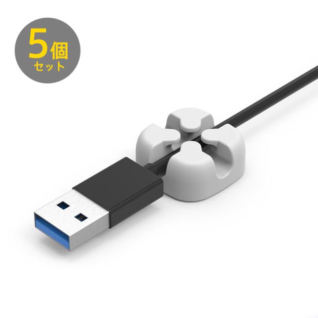 ケーブルクリップ ケーブルホルダー 5個セット USB 充電ケーブル コード スナップハブ データ線収納 固定 整理 落下防止 オフィス デスク 車内