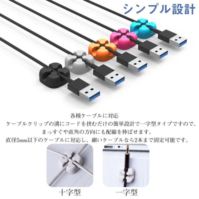 ケーブルホルダー ケーブルクリップ コードクリップ ケーブル固定 コード 収納用 落下防止 両面テープ付り おしゃれ ケーブル ドロップ クリップ USB 配線 PC デスク すっきり デスク周り 家具 インテリア 充電ケーブル オフィス 車内 スナップハブ 充電コードホルダー ハブ テーブルタップ データ線収納 整理