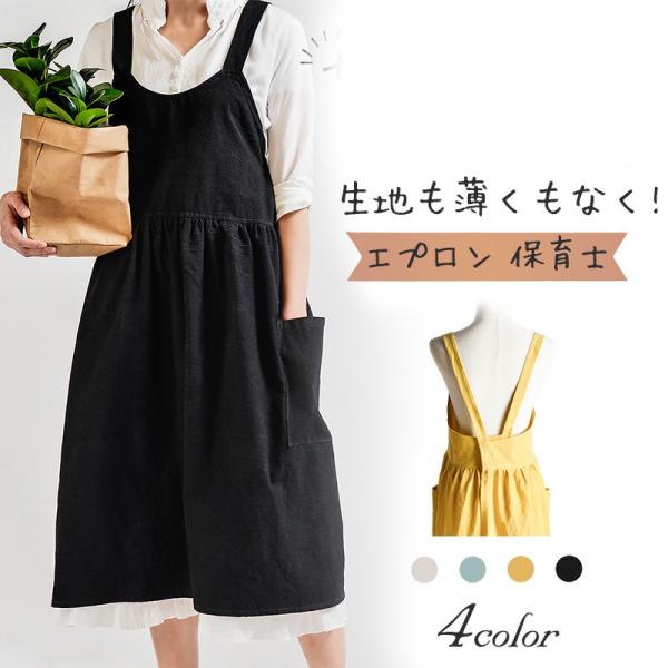 エプロン ワンピース 綿 レディース おしゃれ 割烹着 保育士 エプロンワンピース H型 北欧 ワークエプロン 無地 介護 子供 幼稚園 母の日 上品