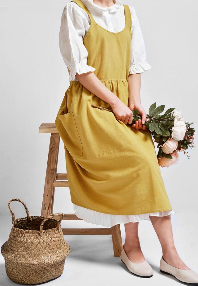 ・生地も薄くもなく、厚くもなく、ちょうどいい厚さの生地のためストレスフリーの 胸当てエプロンです。