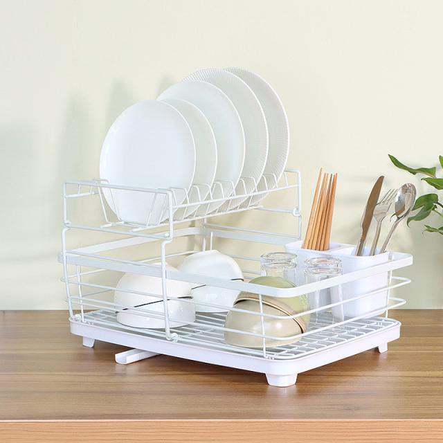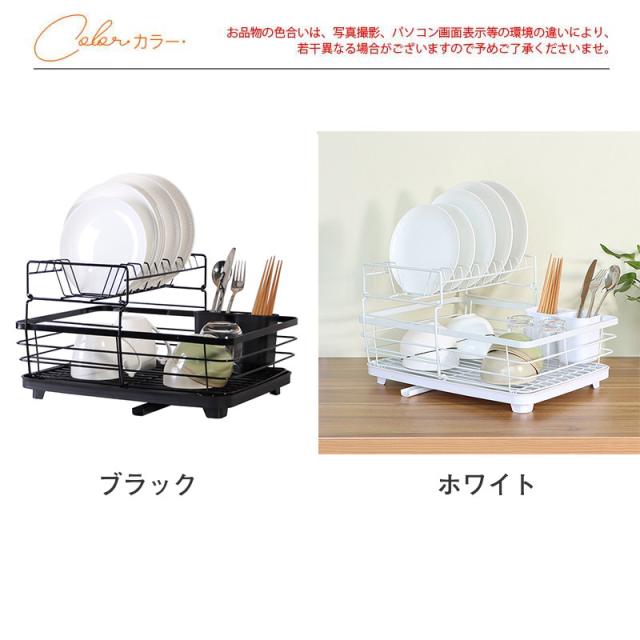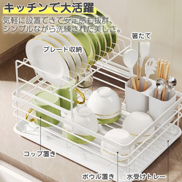 水切りラック 2段 水切りかご 大容量 ワイド 水切り 省スペース 食器 乾燥 水切りバスケット キッチン用品 箸立 排水 ディッシュラック おしゃれ