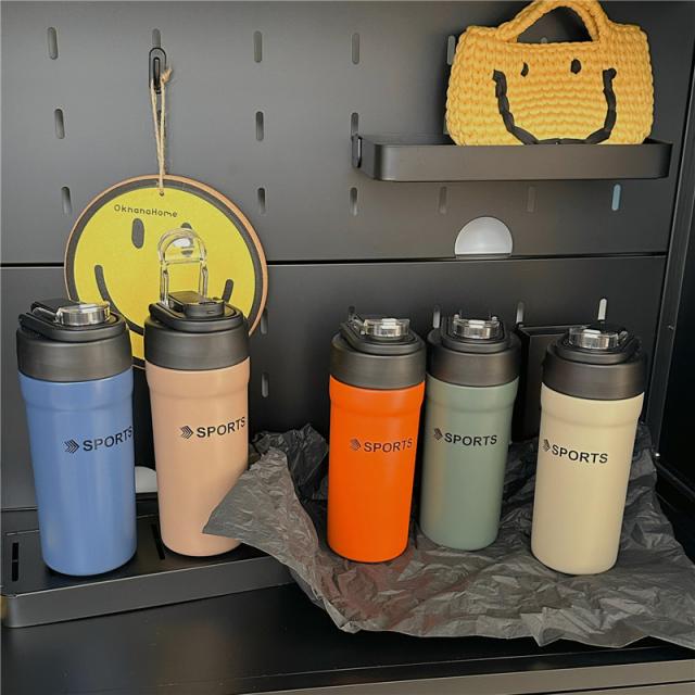 タンブラー 水筒 500ml 大容量 直飲み 真空断熱 保温 保冷 取っ手付き ストロー付き ステンレス コーヒーカップ 二重構造 車載 アウトドア