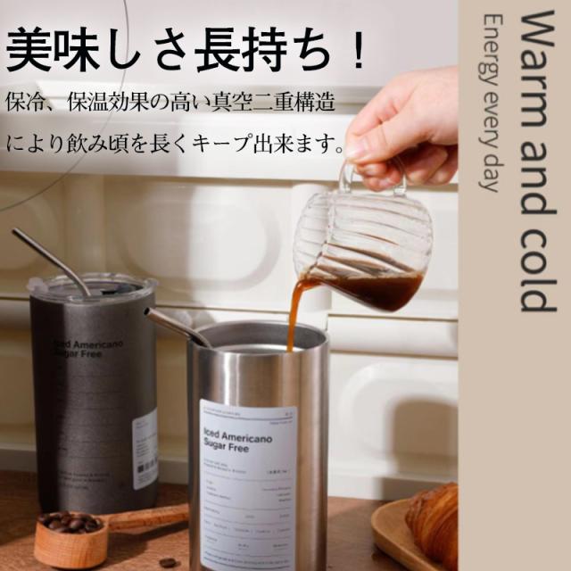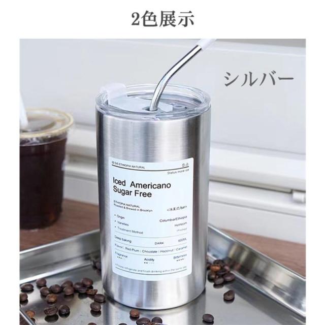 タンブラー 水筒 蓋付き タンブラー 600ml ストロー付き 二重構造保温 保冷 保温 真空断熱 コーヒーカップ 持ち運び 直飲み おしゃれ