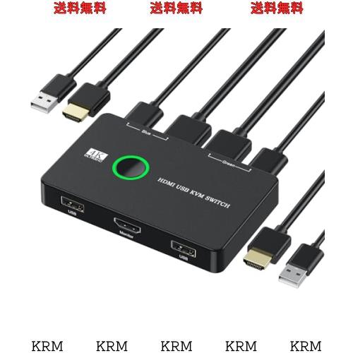 ZARPA 4K KVMスイッチ 2入力1出力 HDMI KVM切替器 PC2台用 プリンタ マウス キーボードなどを共有 usb切替器 4K@60Hz USBケーブル×2 HD