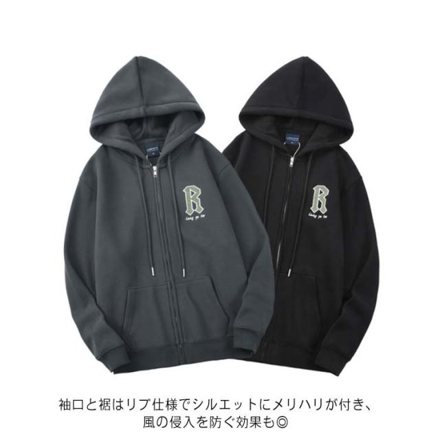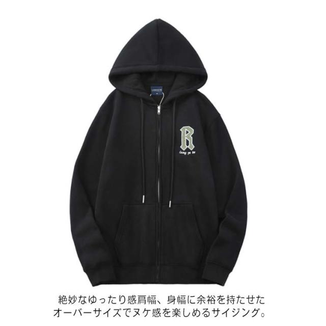 メンズ フード付き スウェットパーカー ジップアップパーカー ビッグシルエット 裏起毛 ボアパーカー 送料無料 フルジップパーカー オーバーサイズ 体型カバー 無地 長袖 送料無料 ユニセックス トップス あたたかい