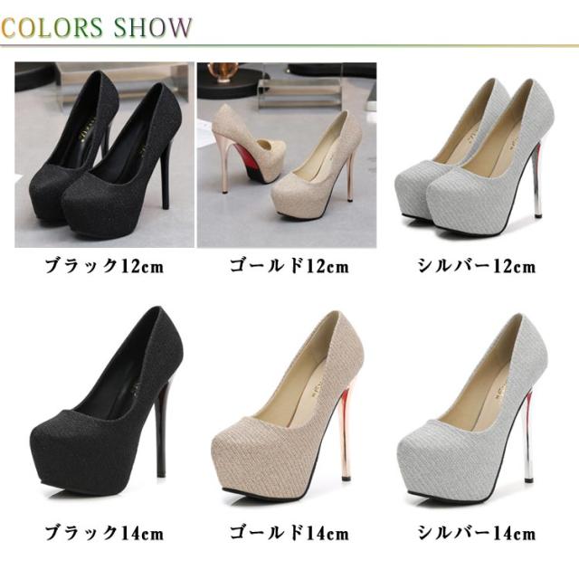 | 12/14cm選べるヒール シンプルなデザイン存在感抜群!美脚パンプス。 エレガントな足元にしれくれる美しいパンプスで女性らしさをアップ! 抜群の美しいレッグラインを演出します♪ グリッターラメがキラキラ☆暗い中でも映えます♪ 結婚式やパーティなど、華やかな席にもおすすめです♪ ストームは厚めで安定感が抜群。軽いので歩きやすくクッション性もよいので長時間履いても疲れにくいです。 おしゃれで可愛いパーティーや結婚式でも履けるパンプス。 デイリー使いはもちろん、結婚式や二次会、パーティー等のフォーマルパンプスとしてもオススメで、スカートやワンピース、ドレスやパンツスタイルにも合わせやすいデザイン。 | |