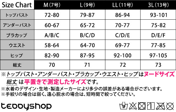 ※トップバスト・アンダーバスト・ブラカップ・ウエスト・ヒップはヌードサイズ、