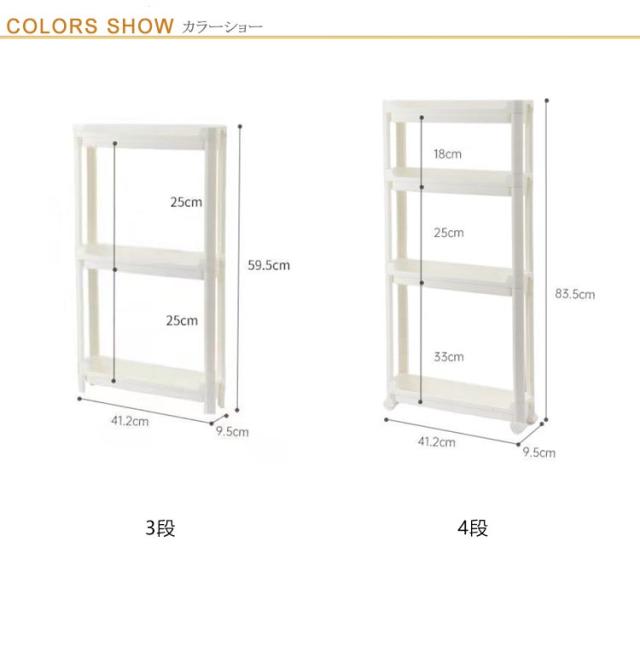 | サイズについての説明 | サイズ:3段:41.2*9.5*59.5cm 4段::41.2*9.5*83.5cm ※サイズ計測には誤差が生じます。 |