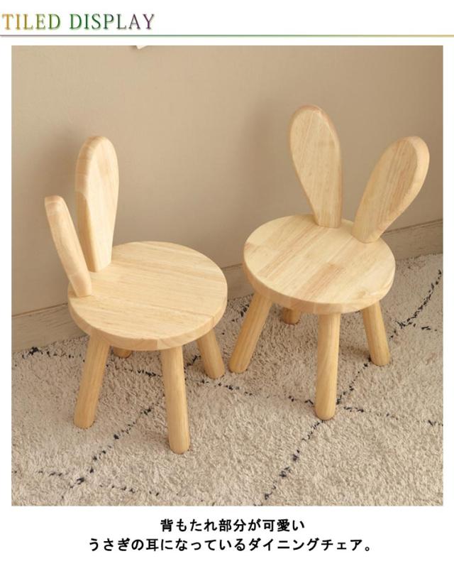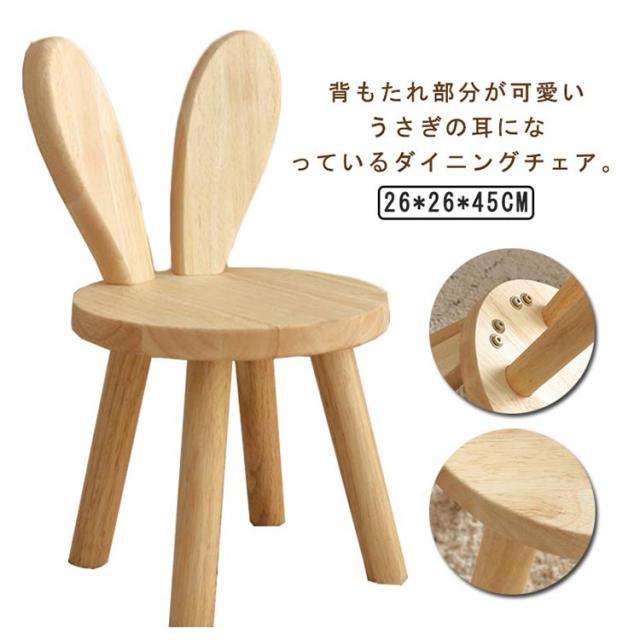 | 背もたれ部分が可愛いうさぎの耳になっているダイニングチェア。 自然の柔らかさ、温もりを感じる天然木製。 座面、背もたれ、足部分の全て丸みのあるデザインになっております。 見た目の可愛さは癒されること間違いなし!お子様のプレゼントにもおススメです。 シンプルなデザインでオシャレな空間を演出来ます。 | |
