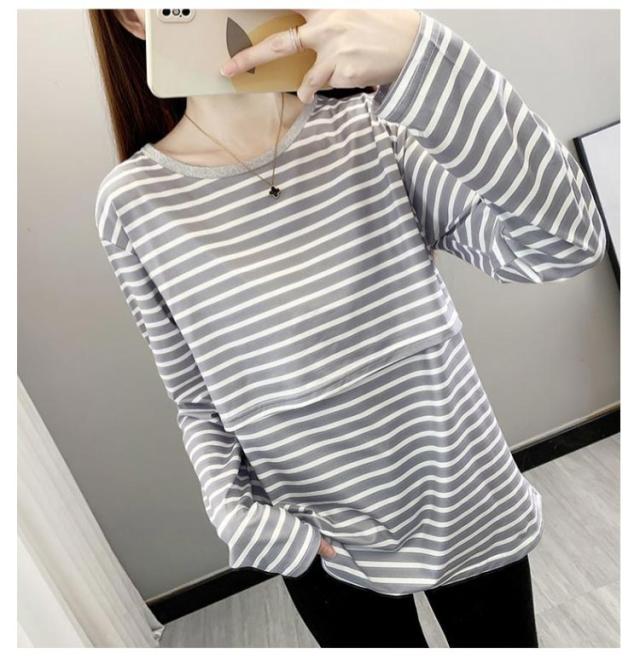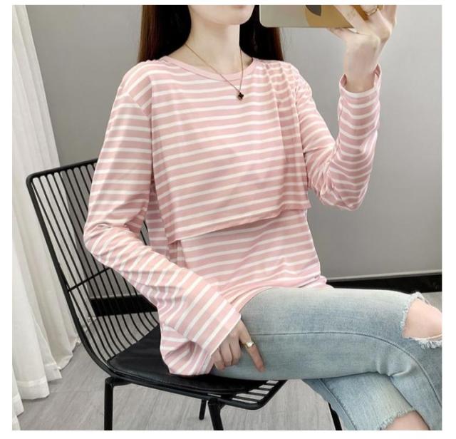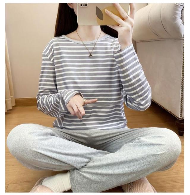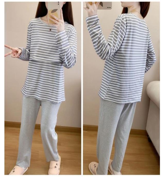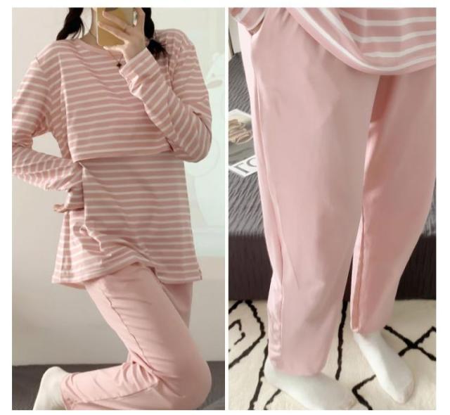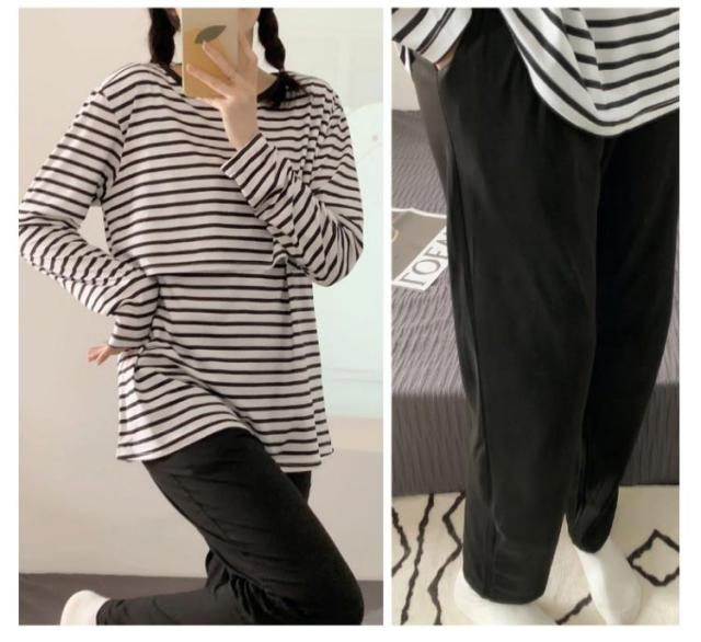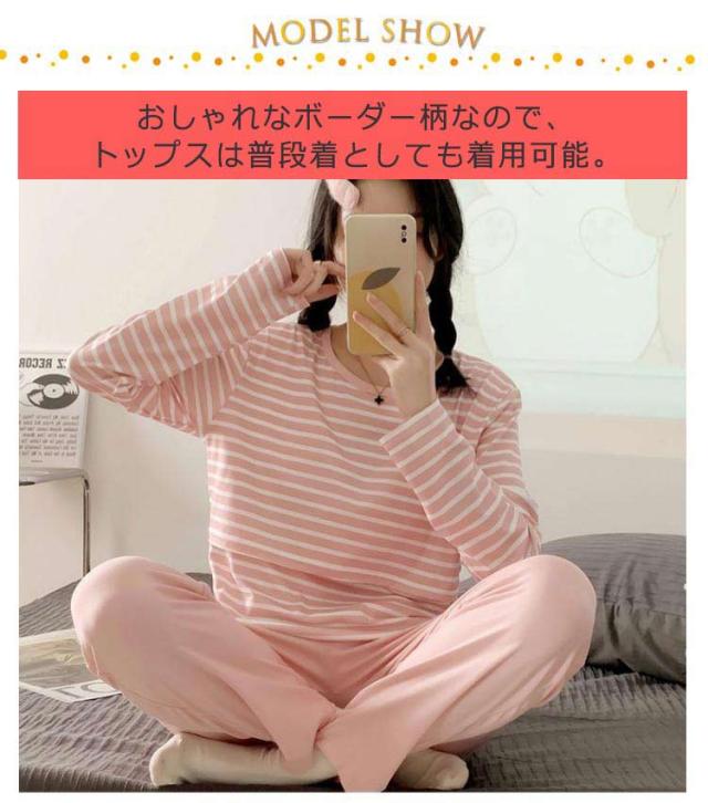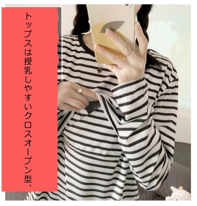 授乳服 長袖 トップス 授乳パジャマ マタニティインナー 肌着 カップ付き フロントオープン 上下セット 授乳インナー ボーダー ロングパンツ 産前産後 授乳 トップス 授乳インナー 取り外し可能カップ付き 下着 送料無料 ルームウェア