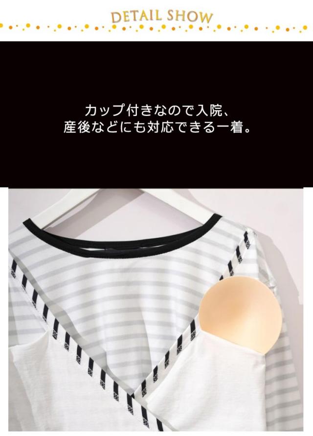 | 気持ちいい、授乳出来るパジャマ上下セット! おしゃれなボーダー柄なので、トップスは普段着としても着用可能。 トップスは授乳しやすいクロスオープン型、パンツはアジャスターでウエスト調節のしやすい! カップ付きなので入院、産後などにも対応できる一着。 | |