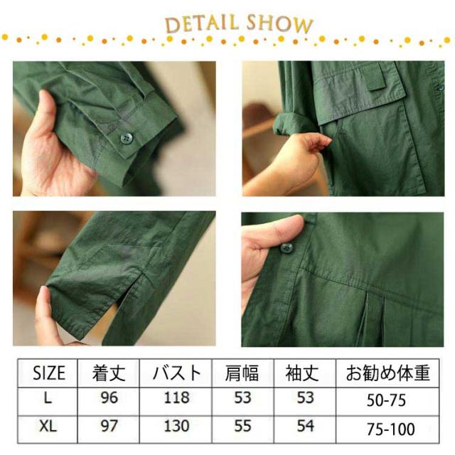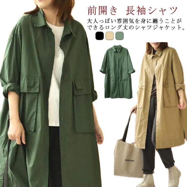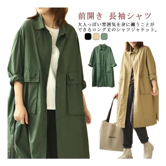 ポケット付き シャツジャケット レディース ロングジャケット スリット 襟付き 前開き 長袖シャツ ロングシャツ ジャケット 送料無料 長袖 羽織り ゆったり 送料無料 シンプル カジュアル おしゃれ 春 秋 L XL