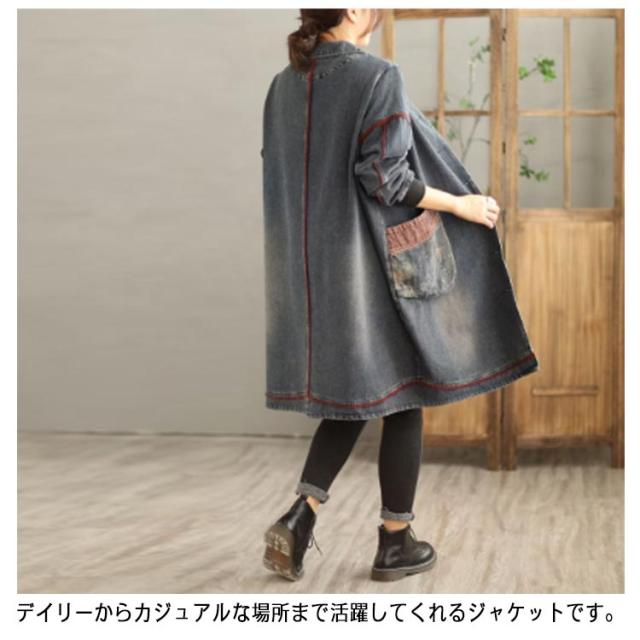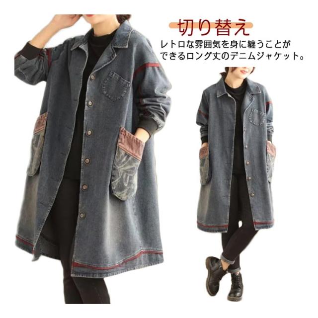L レトロ コート デニムコート オーバーサイズ 春 アウター デニムジャケット デニムジャケット Gジャン 大きいサイズ 切り替え おしゃれ ロングジャケット 体型カバー M ロングコート XL 2XL 3XL