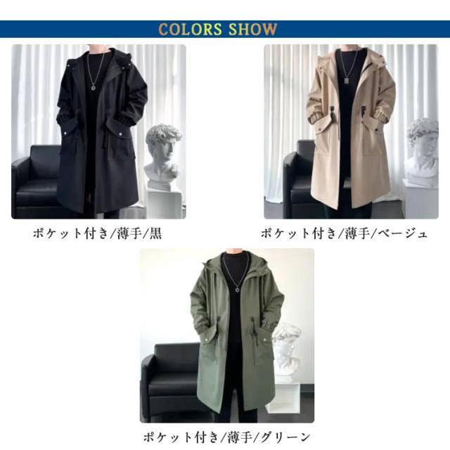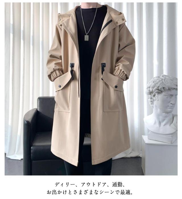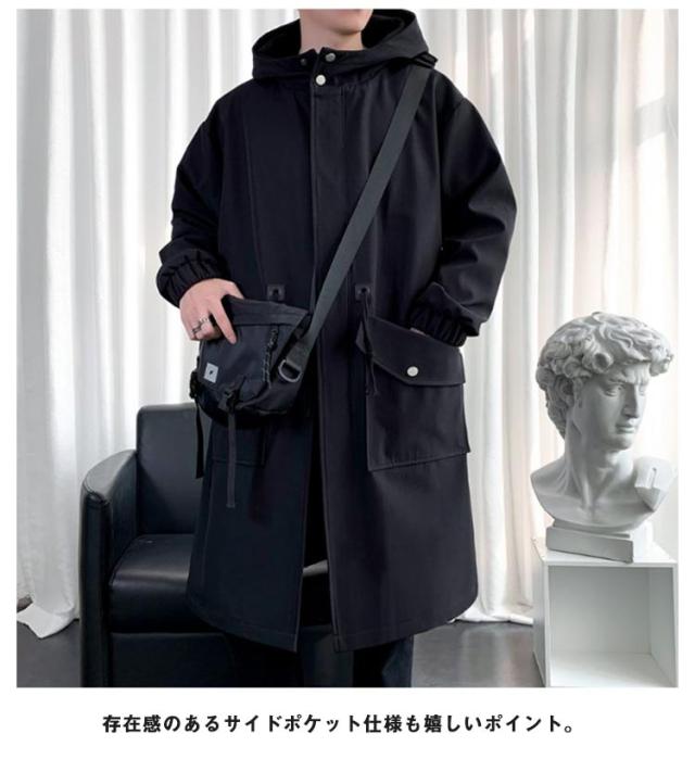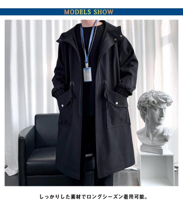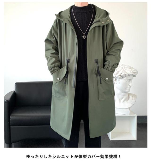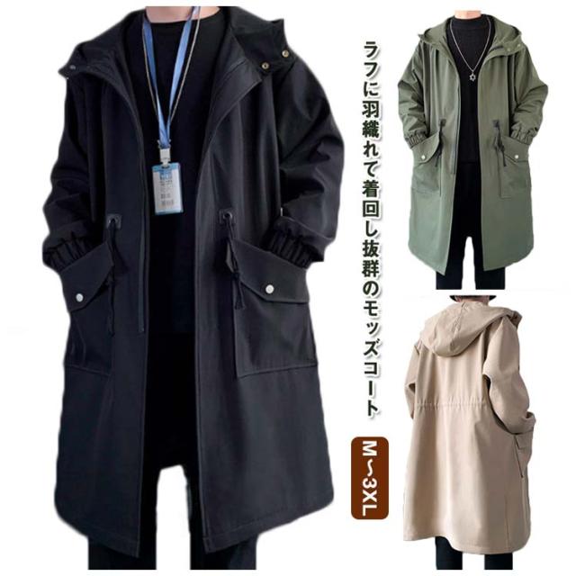 ロング丈 メンズ 春秋 ビジネス ジャケット ミリタリーコート ミドル丈 カジュアル スプリングコート 秋服 アウター スプリングコート フード付き ロングコート トップス マウンテンパーカー モッズコート