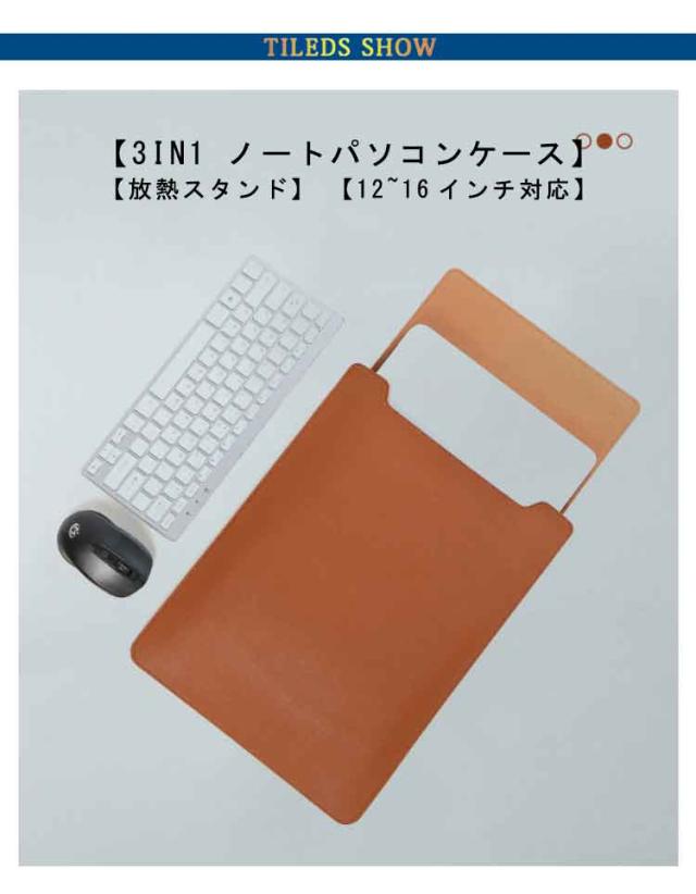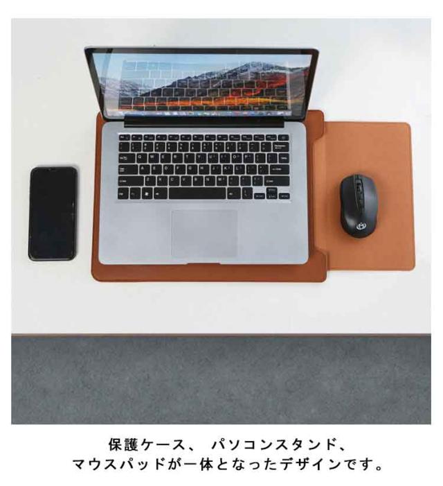 | 【3in1 ノートパソコンケース】【放熱スタンド】【12~16インチ対応】 保護ケース、パソコンスタンド、マウスパッドが一体となったデザインです。 撥水性と衝撃に強いPUレザーと生地と柔らかい毛織地を採用しており、摩擦によって発生する傷を抑える。 表面は水が浸透しにくい材質を採用し、水が付けても、簡単に拭き取れます。雨の日にも安心して持ち歩けます。 ノートパソコンにぴったりのサイズ感で、軽量かつスリムでパソコンの持ち運びや保管の際にはとても便利です。 重さ僅か215g、厚さも3mmとなっています。Macbook Pro/Air/タブレットはもちろん、他の平底ノートPCにも対応する。 | |