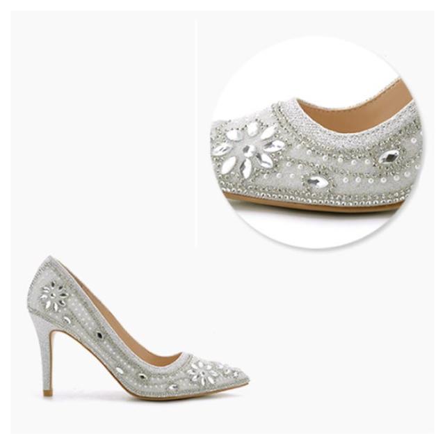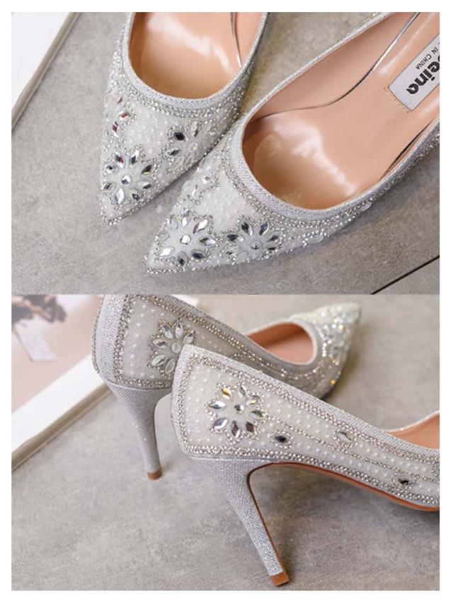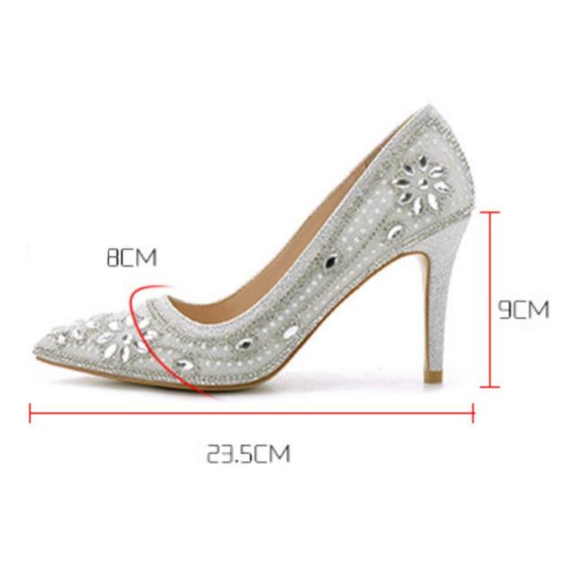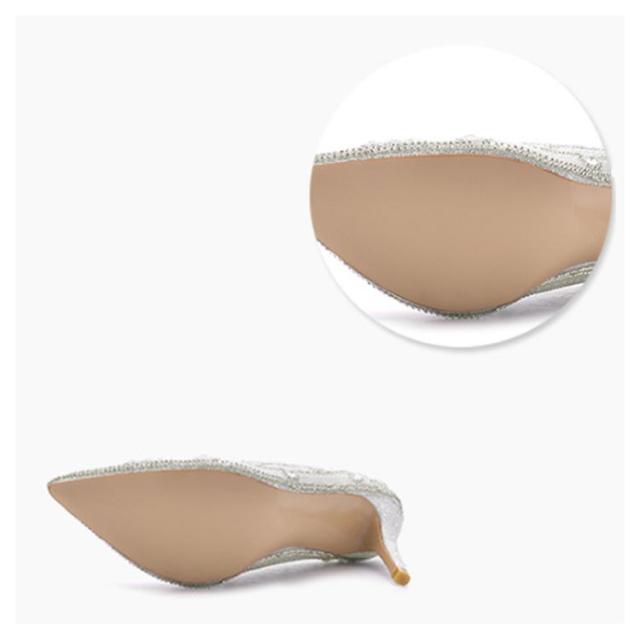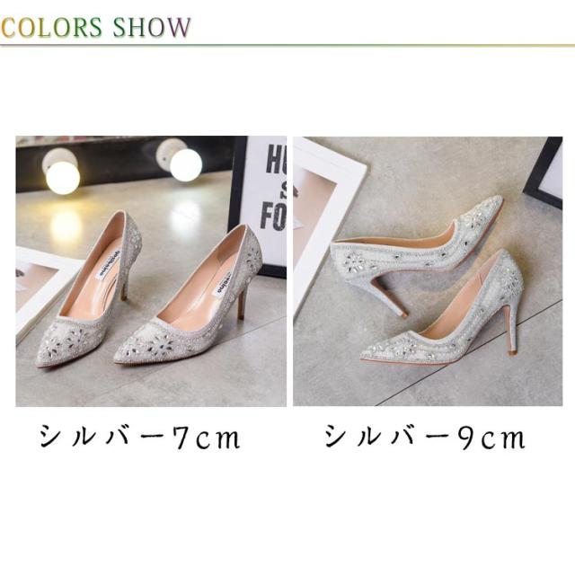 | ウェディングドレスに!花嫁・二次会・結婚式・発表会・演奏会・披露宴・卒業式!結婚式にも、普段にも履けるタイプです。 デザインは見た目通り可愛く、キラキラも上品でした! あと履いた時に足というか立ち姿がキレイに見えるきがします! 上品なシルエットで美脚効果も期待できるハイヒール。 7/9cmの2つ高さを用意しています。 | |