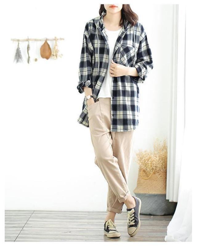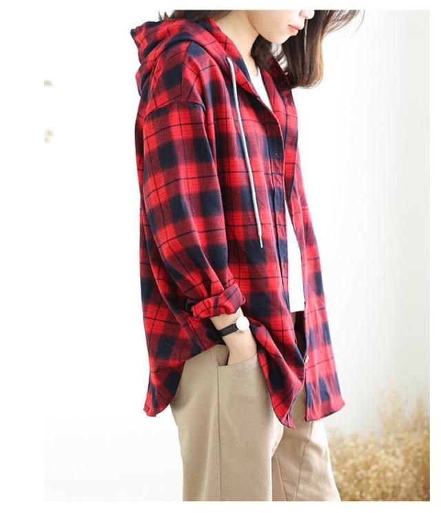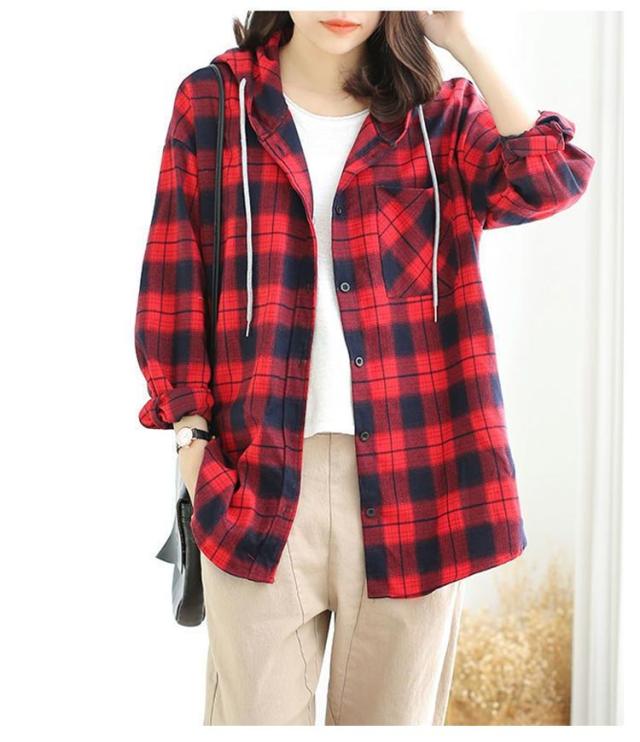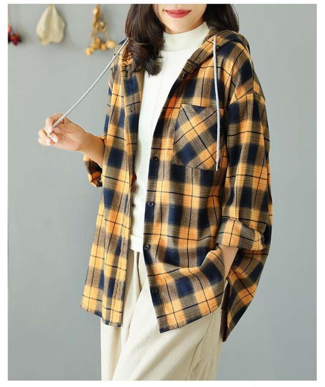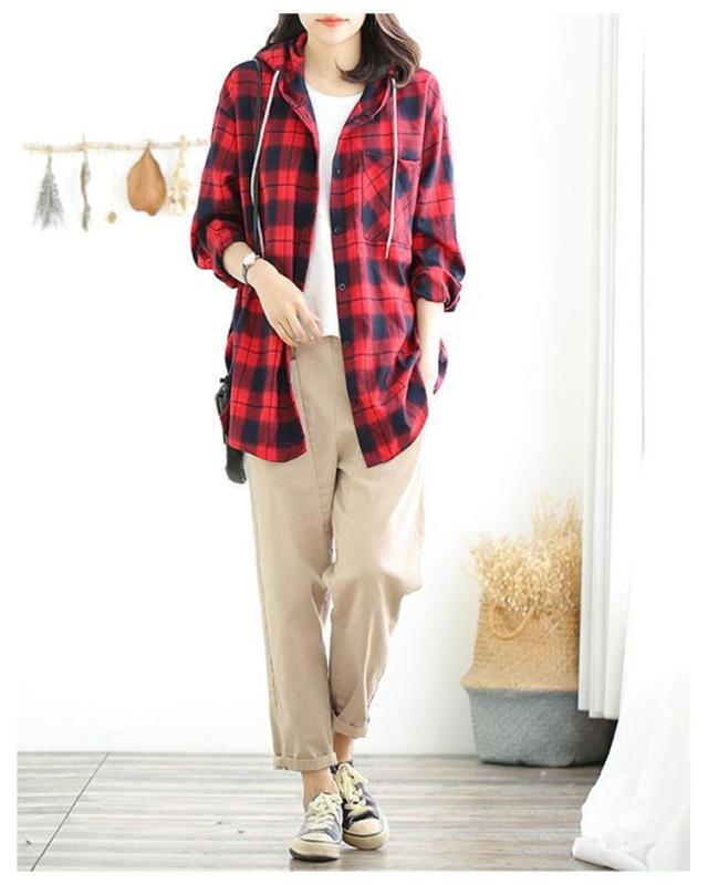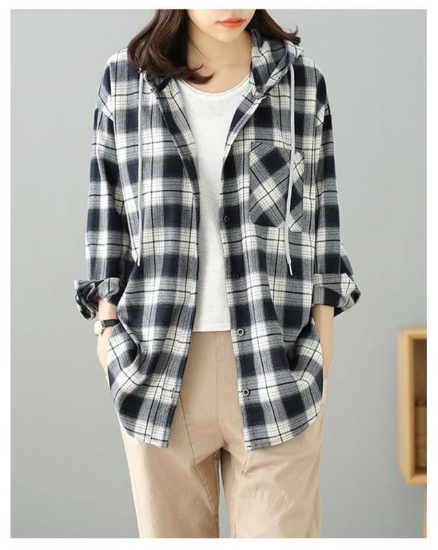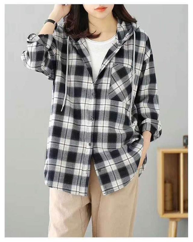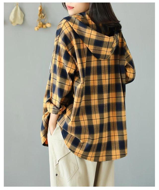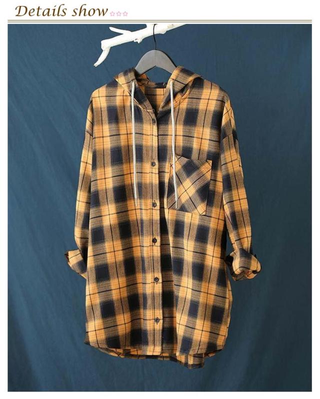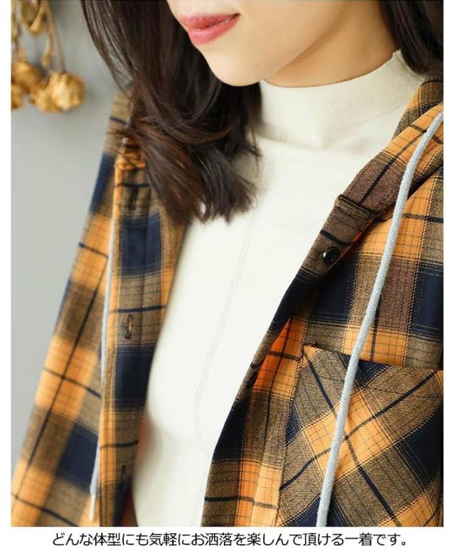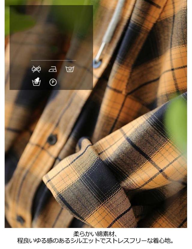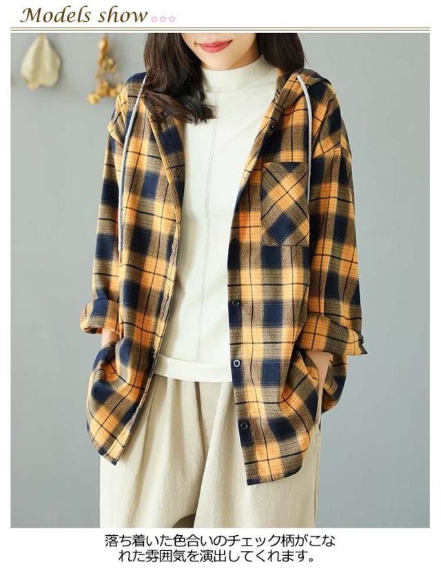 カジュアルシャツ フード付きシャツ フード付き レディース チェック柄 ロングシャツ 羽織 ライトアウター 春服 秋服