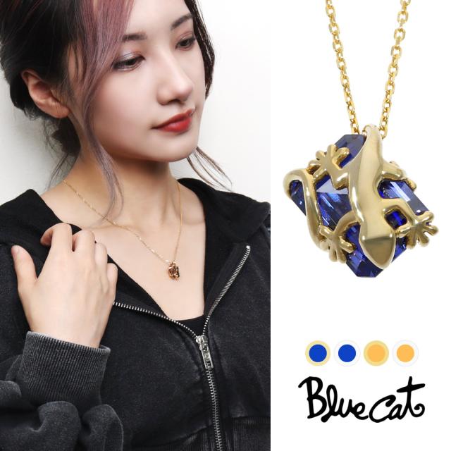 Blue Cat ヤモリ エメラルドカット ネックレス ペンダント シルバー925 ゴールド トカゲ ゲッコー 爬虫類 動物 お守り かっこいい 上品 大人 きれいめ