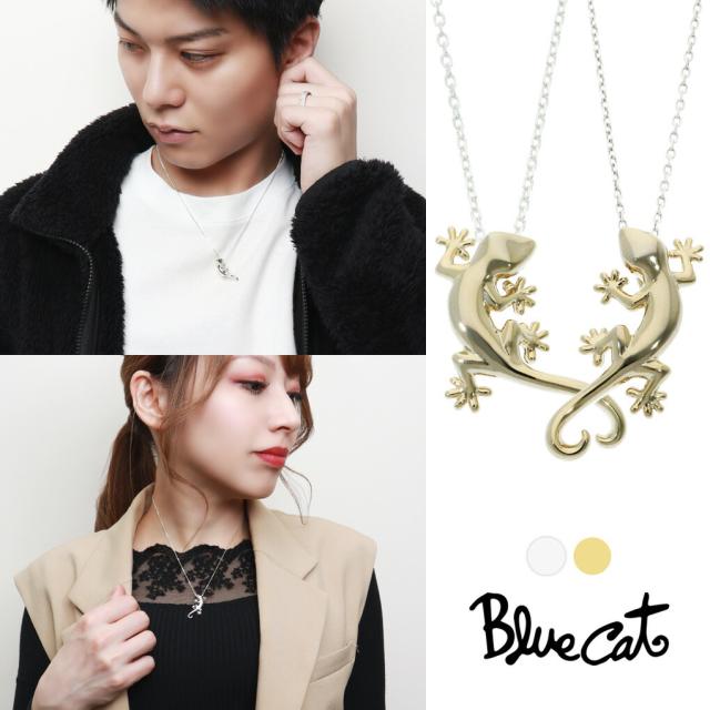 Blue Cat ヤモリ ハート ペアネックレス ペアペンダント シルバー925 ゴールド ネックレス ペア セット おそろい お揃い ゴールド トカゲ ゲッコー