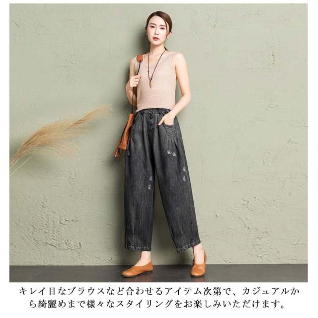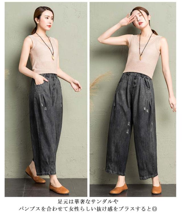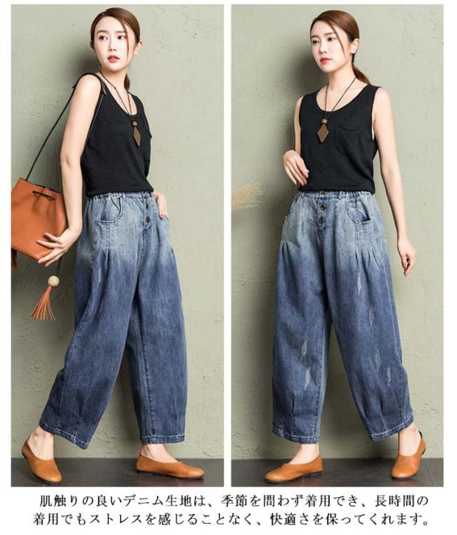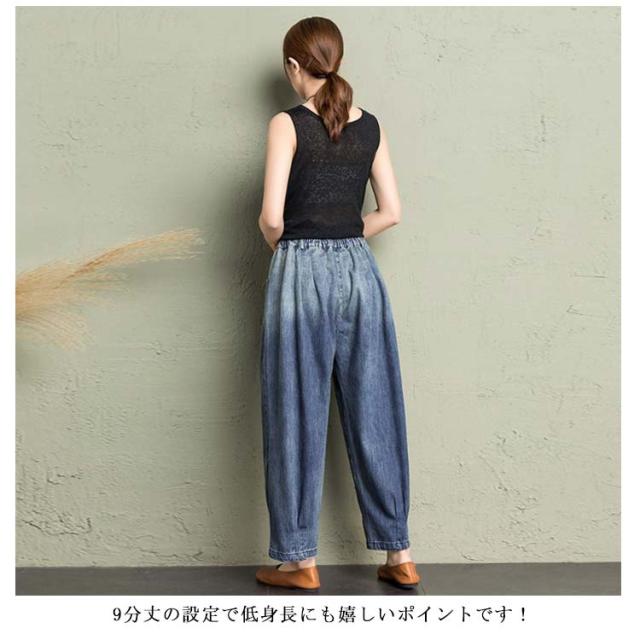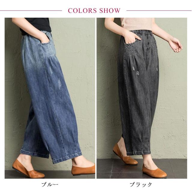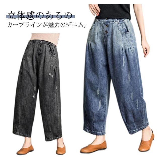 デニム カーブパンツ 春 レディース カジュアル カーブシルエット ワイド カーブデニム 体型カバー ワイドパンツ 9分丈 ゴムウエスト デニム 大人 デニムパンツ キレイめ 脚長効果 夏 ボトムス Gパン ジーパン ジーンズ テーパードパンツ ブラック ブルー