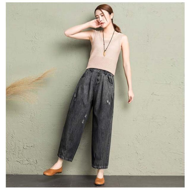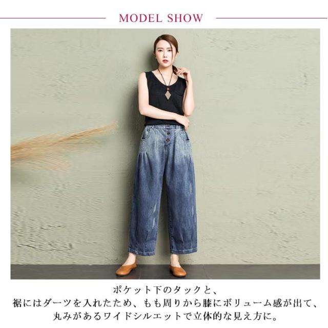 | 立体感のあるのカーブラインが魅力のデニム。 ポケット下のタックと、裾にはダーツを入れたため、もも周りから膝にボリューム感が出て、丸みがあるワイドシルエットで立体的な見え方に。 肌触りの良いデニム生地は、季節を問わず着用でき、長時間の着用でもストレスを感じることなく、快適さを保ってくれます。 9分丈の設定で低身長にも嬉しいポイントです! キレイ目なブラウスなど合わせるアイテム次第で、カジュアルから綺麗めまで様々なスタイリングをお楽しみいただけます。 足元は華奢なサンダルやパンプスを合わせて女性らしい抜け感をプラスすると◎ | |