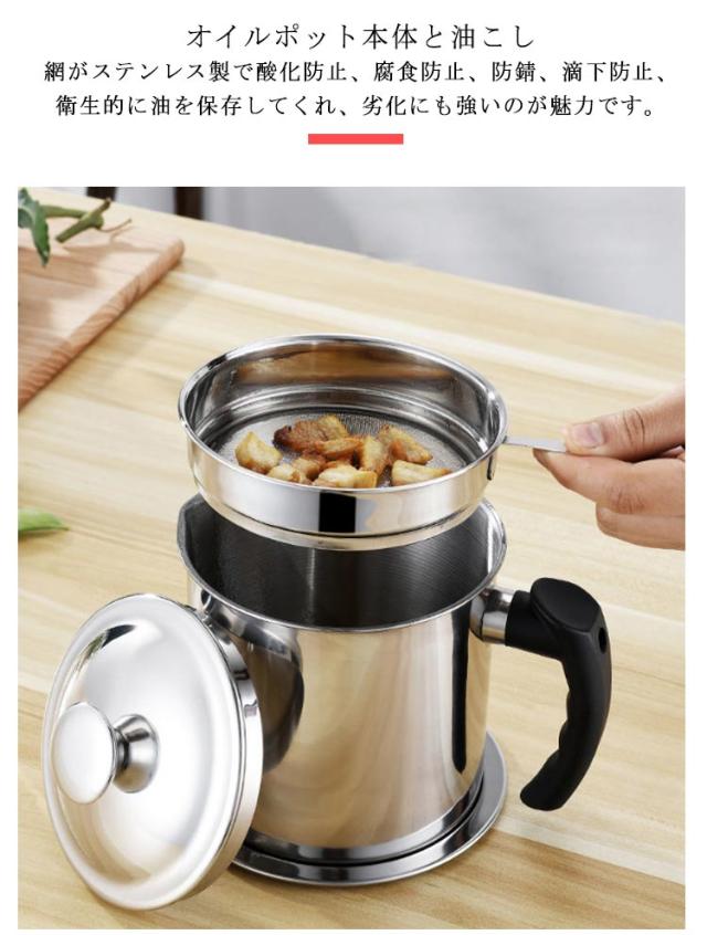 オイル入れ ステンレス 油こし器 こし網 油入れ フィルト ステンレス 油ポット オイルポット コンパクト オイル フィルター こし器 油こし 油 スリム 大容量 1.2L 小さめ 揚げ物 調理器具 油濾し 油 濾過 保存 節約