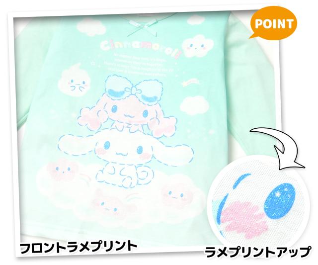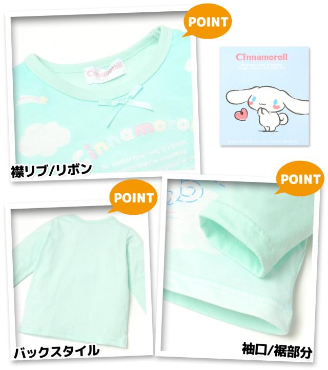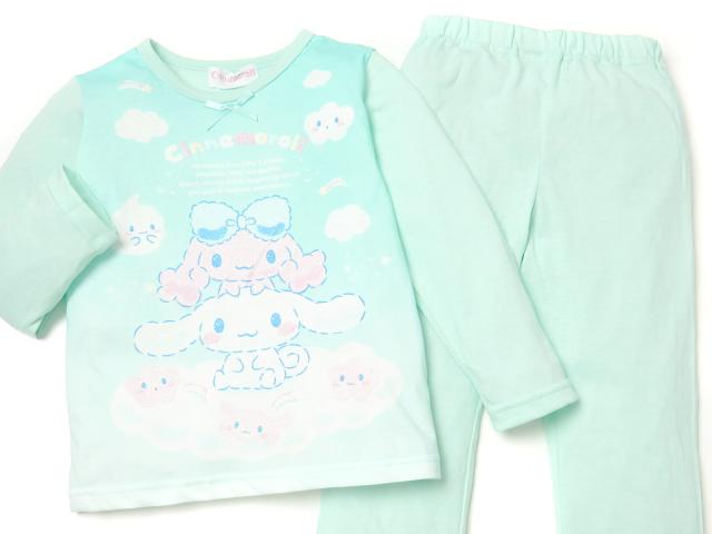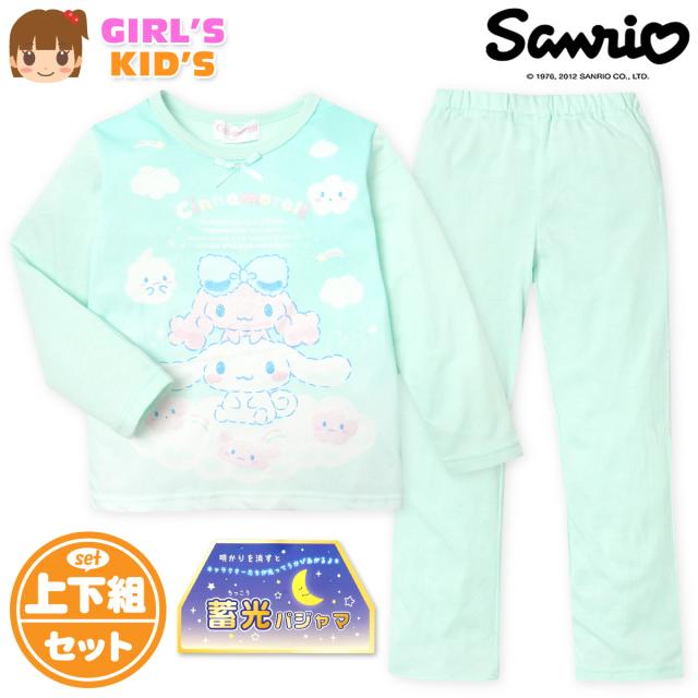 【送料無料】女児 キッズ 天竺 長袖 光るパジャマ Sanrio サンリオ シナモロール シナモン 上下組 蓄光 ラメ リボン 薄手 女の子 td-0763【メール便対応】