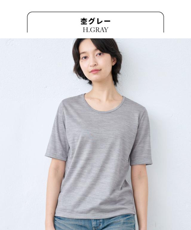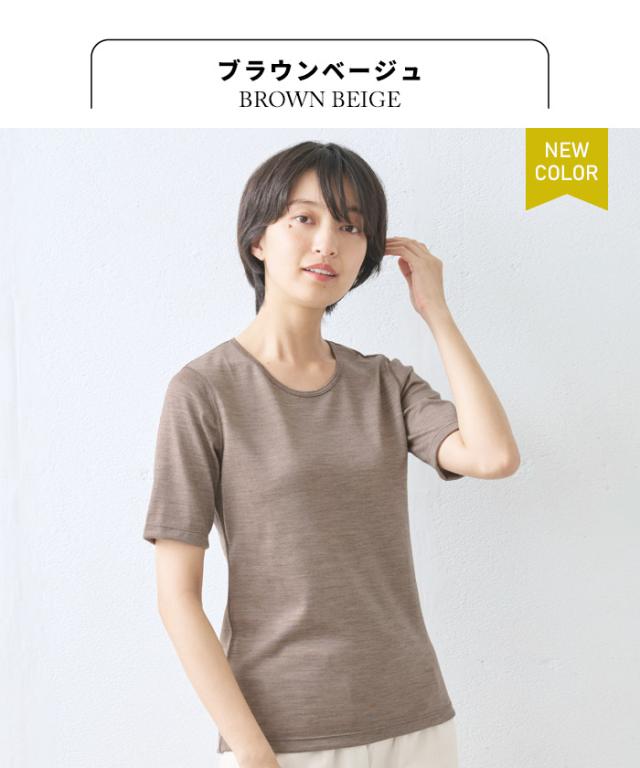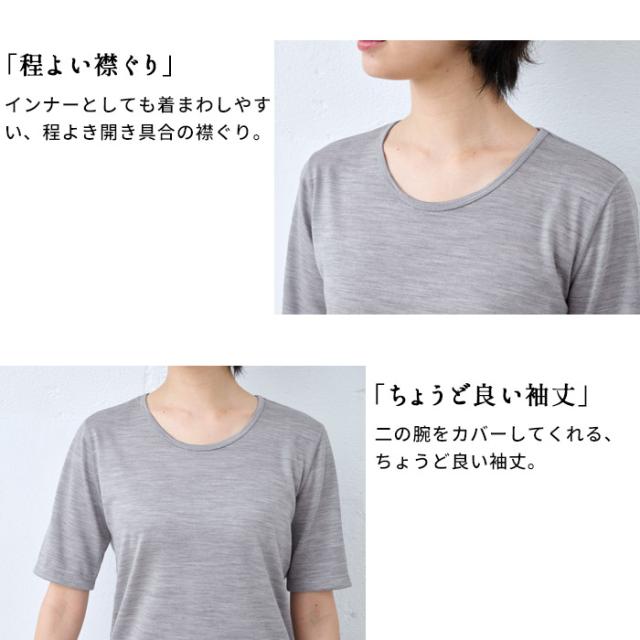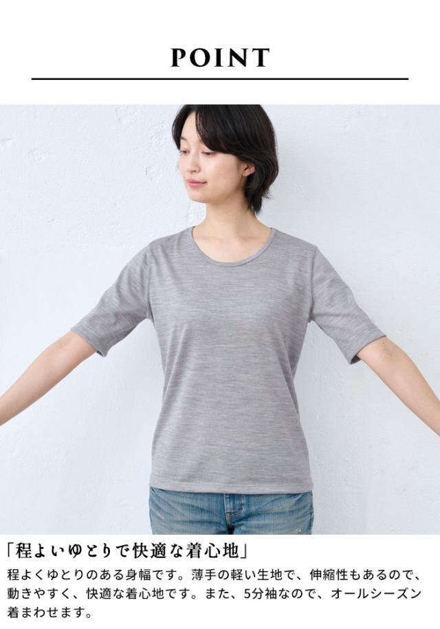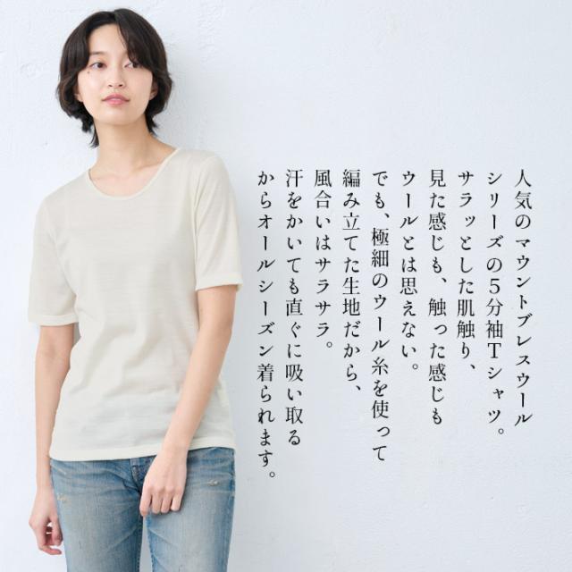 呼吸する ウール100% 五分袖 Tシャツ 日本製 / メリノウール インナー レディース 登山 ウォッシャブルウール 毛100 洗えるウール 肌着 アンダーウェア マウントブレスウール 防寒 冷え防止 抗菌 防臭 春 秋 冬