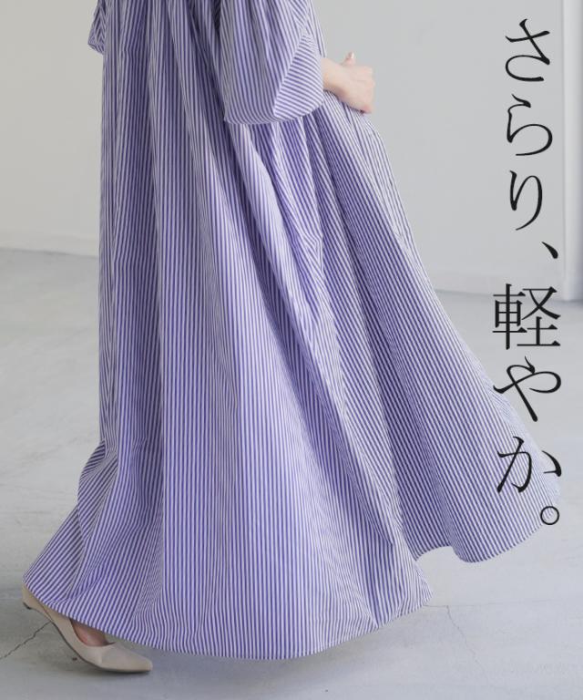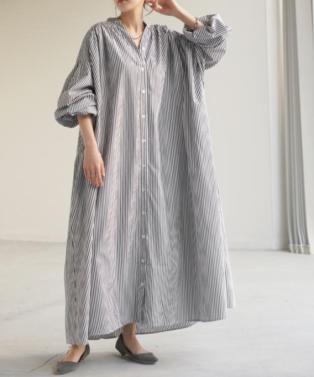 1枚でも羽織りとしても活躍する万能なストライプシャツワンピースです。