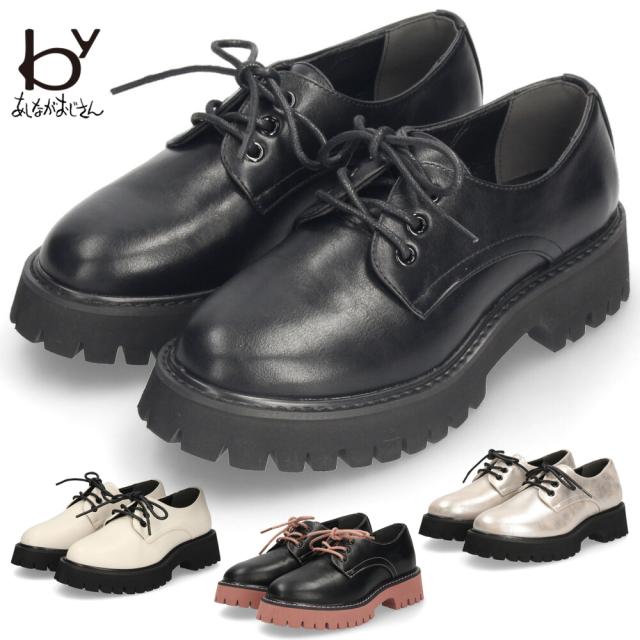 by あしながおじさん 厚底 レースアップ シューズ レディース 靴 おしゃれ マニッシュ 黒 ブラック ピンク シルバー アイボリー 軽量 ボリュームソール 8710505