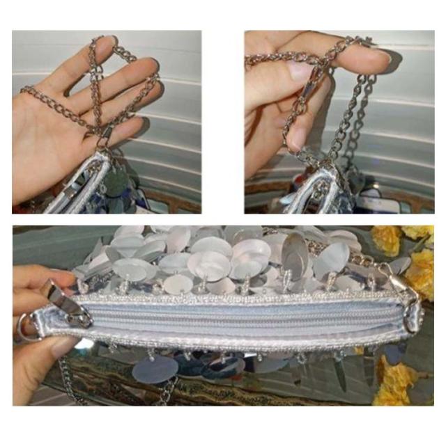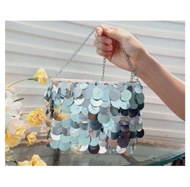 ゴージャス シルバー スパンコール メタル ショルダーバッグ レディース 鞄 ハンドバッグ きらきら 派手 目立つ 個性的 20代 銀 きれいめ 大人女子 チェーン パーティー お呼ばれ