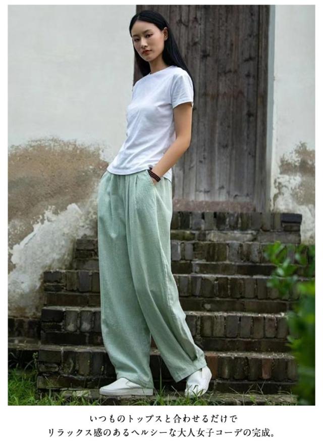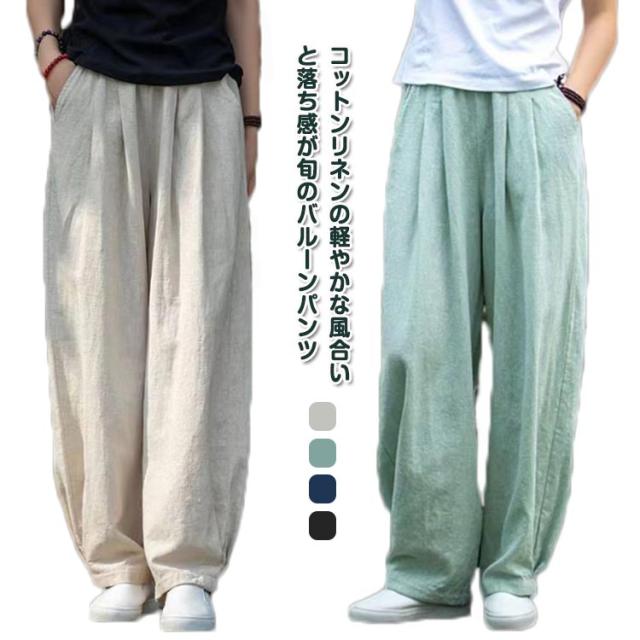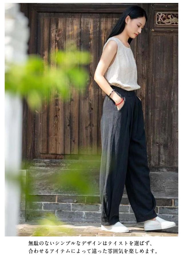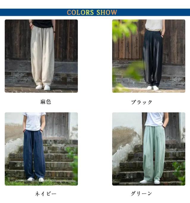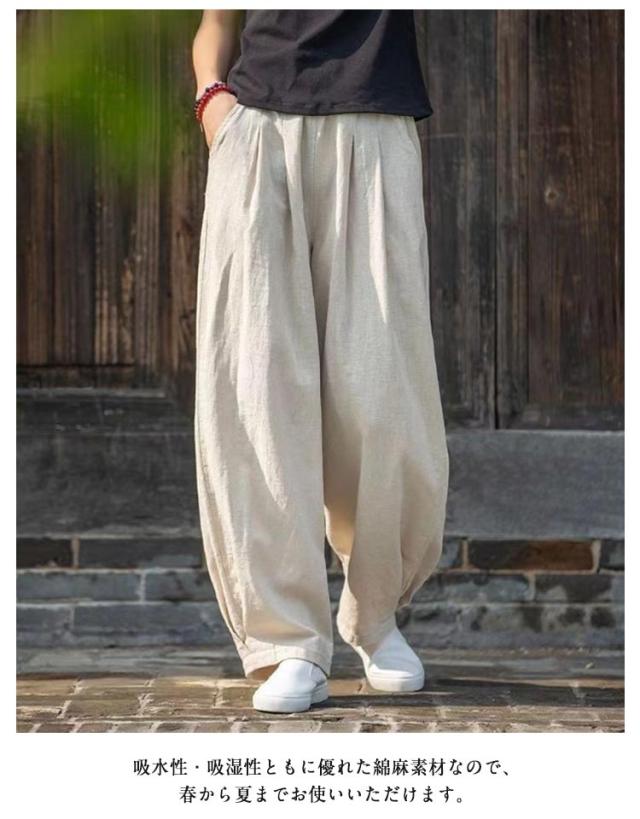 綿麻 パンツ レディース バルーンパンツ コットンリネン 春 夏 秋 ワイドパンツ カジュアル おしゃれ 薄手 総ゴム ポケット 体型カバー きれいめ 高校生 大学生 オフィス 通勤 通学 ゆったり 体型カバー ナチュラル 軽い 上品 20代 30代 40代 50代 ギフト 送料無料