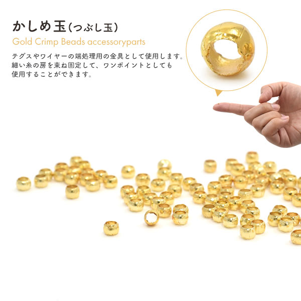 かしめ玉 (つぶし玉) ゴールド 100個前後セット 【外径2.1mm、 内径0.75mm】金色 パーツ 手芸 手芸用品 材料 ハンドメイド ビーズ 潰し玉 オリジナル カシメ玉 カシメ 手作りアクセサリー パーツ アクセパーツ まとめ売り