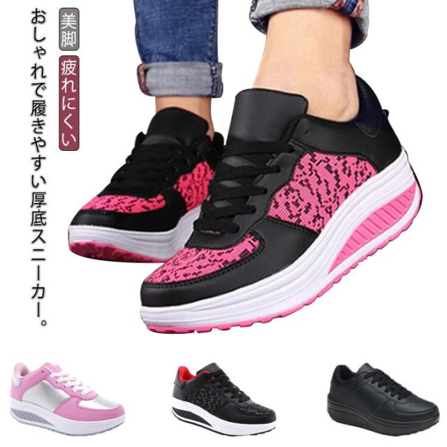 ナースシューズ レディーススニーカー 厚底スニーカー ダイエットシューズ ウォーキングシューズ 船型底 美脚 身長アップ 運動靴 大きサイズ