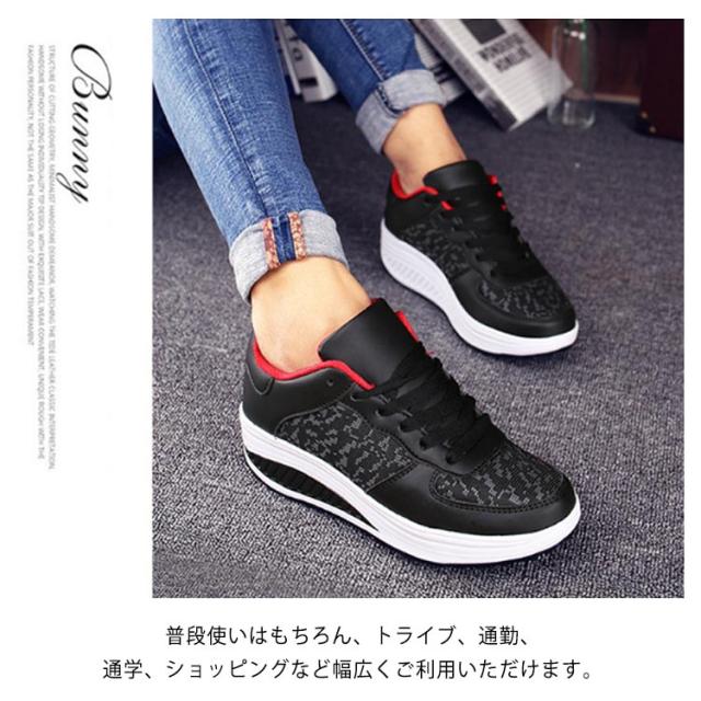 | おしゃれで履きやすい厚底スニーカー。 5cm厚底のデザインなので、足を長めて見えさせる効果があります。 衝撃吸収性と反発力を兼ね備えて、着地時の足への負担を減らします。 長時間のウォーキングや立ち仕事での疲労を軽減します。 アウトソールは滑りにくく丈夫な素材を採用し、日常使いや雨の日でも適用! 普段使いはもちろん、トライブ、通勤、通学、ショッピングなど幅広くご利用いただけます。 ナース/看護師など、立ち時間が長い仕事をする人もおすすめです。 | |