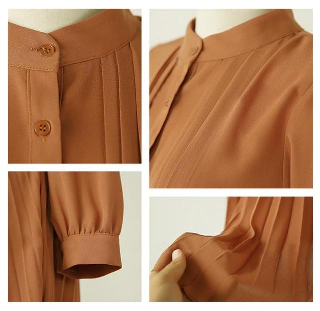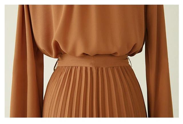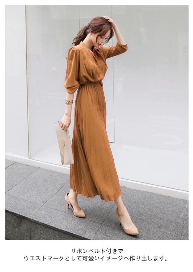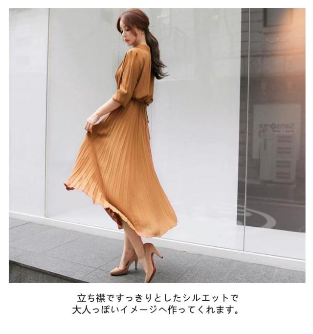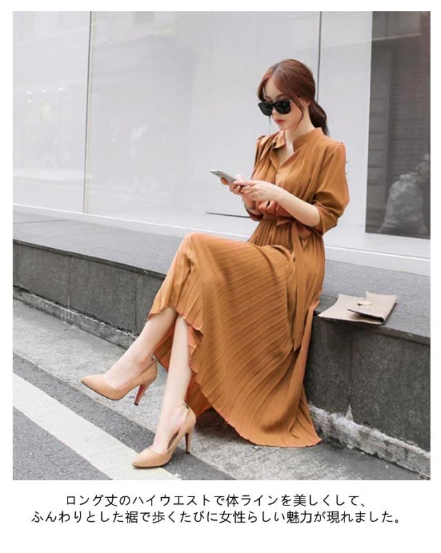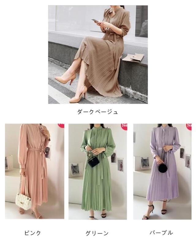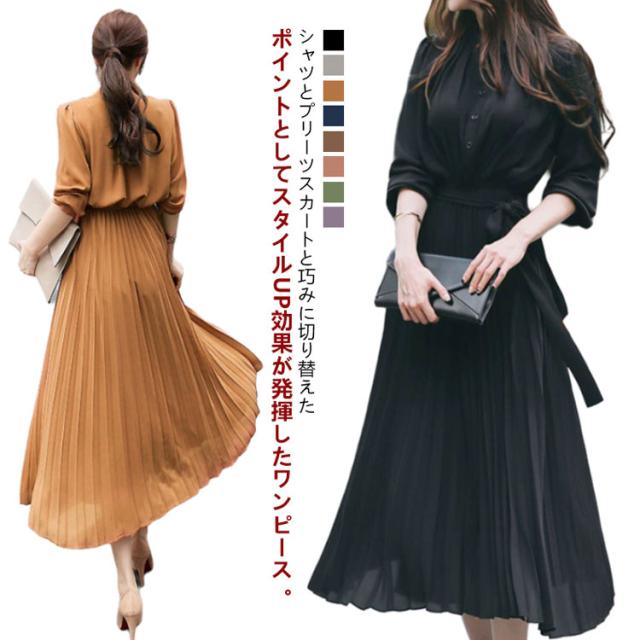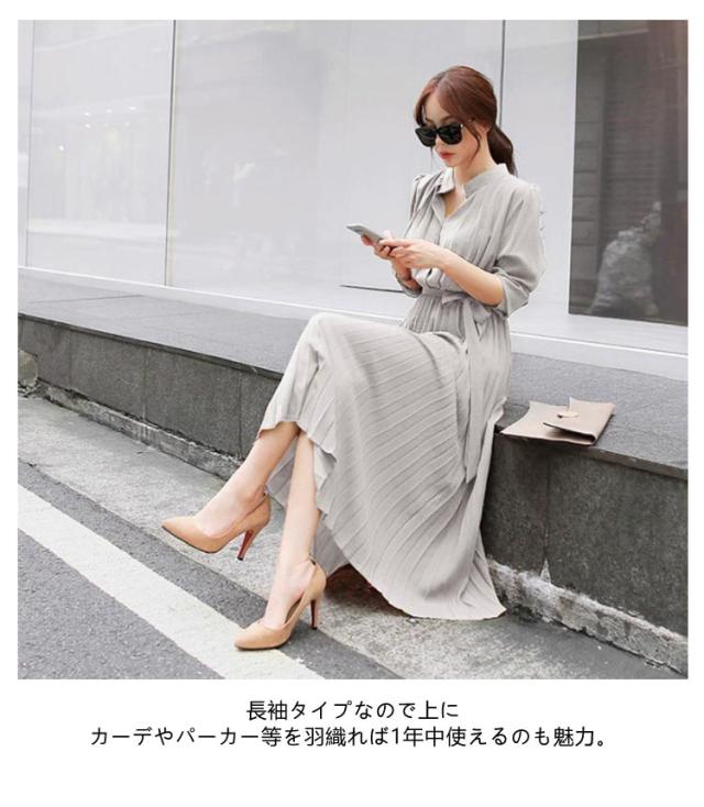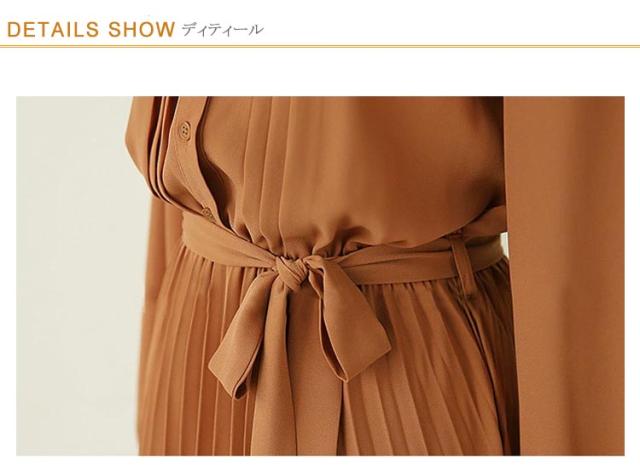 | シャツとプリーツスカートと巧みに切り替えたポイントとしてスタイルUP効果が発揮したワンピース。 シフォン素材を採用して軽やかで1枚で爽やかコーデが完成する万能アイテムです。ロング丈のハイウエストで体ラインを美しくして、ふんわりとした裾で歩くたびに女性らしい魅力が現れました。 リボンベルト付きでウエストマークとして可愛いイメージへ作り出します。 立ち襟ですっきりとしたシルエットで大人っぽいイメージへ作ってくれます。タックに入ったレトロ風の袖デザインで気になる二の腕をカバーしてくれて上品感もあります。 上部分前開きでウエストもゴム入って、着やすくて窮屈感もない着心地が素敵なワンピースです。 腰の位置からプリーツを施したこだわりの技ありデザインがポイントとしてファッションに遅れないシャツワンピースです。 立体的なシルエットと表情のあるワンランク上の着こなしを叶うお洒落な一枚です。長袖タイプなので上にカーデやパーカー等を羽織れば1年中使えるのも魅力。 | |