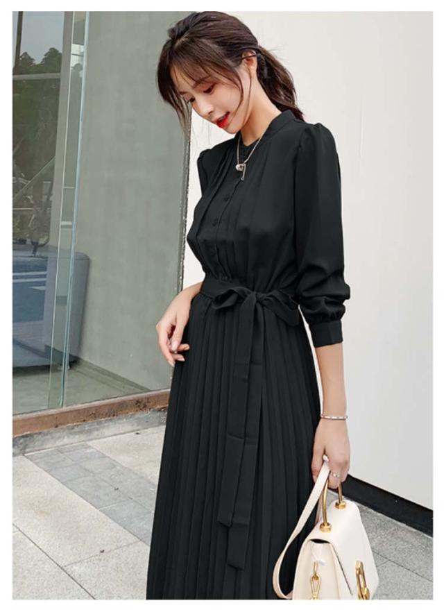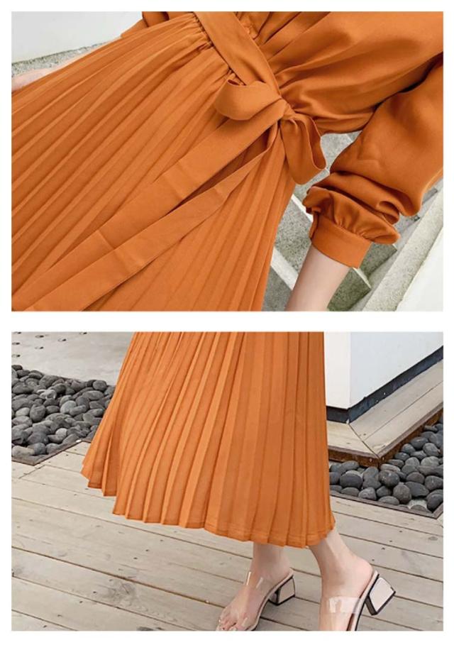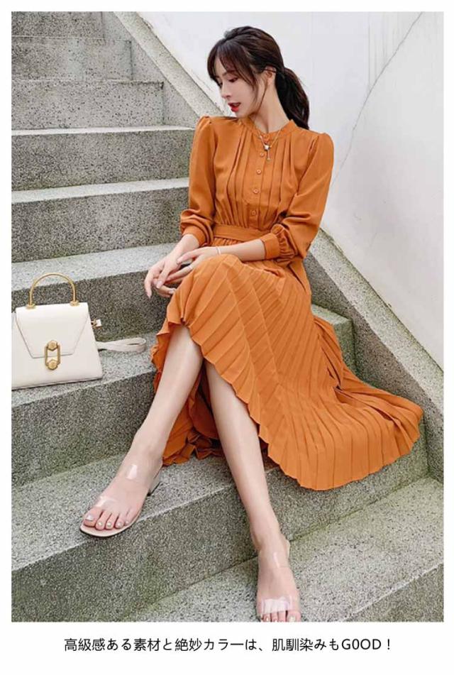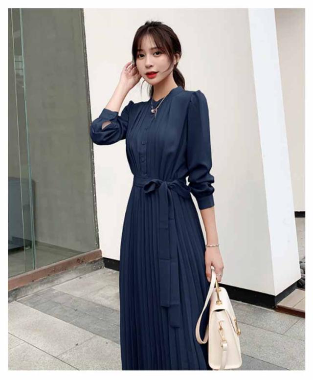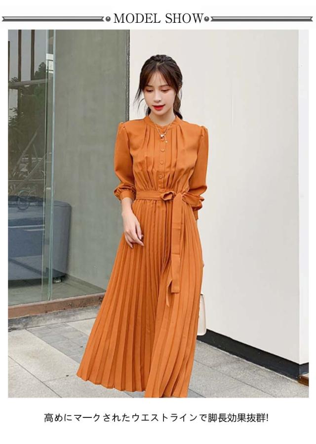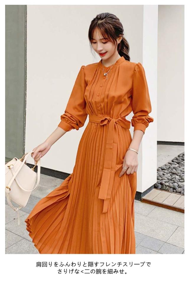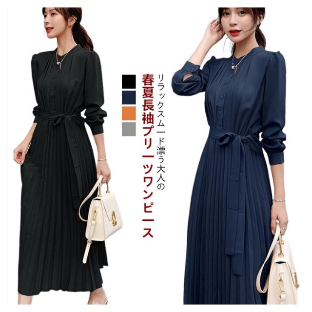 長袖 ワンピース プリーツ プリーツワンピース レディース 春 夏 秋 冬 ロング マキシ ロングワンピース マキシワンピース シャーリング 裏地付き きれいめ ウエストリボン付き