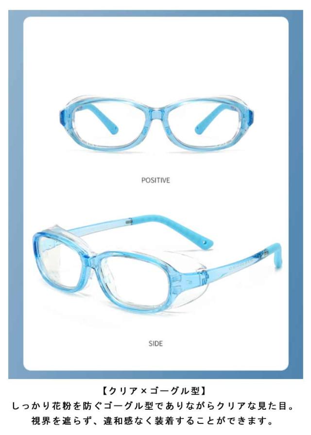花粉メガネ 子供用 お洒落 ゴーグル 花粉防止 キッズ ジュニア 女の子 男の子 保護メガネ 花粉対策 飛沫 感染 予防 黄砂 ブルーライトカット 曇り止め 小学生 低学年 軽量 高学年 送料無料