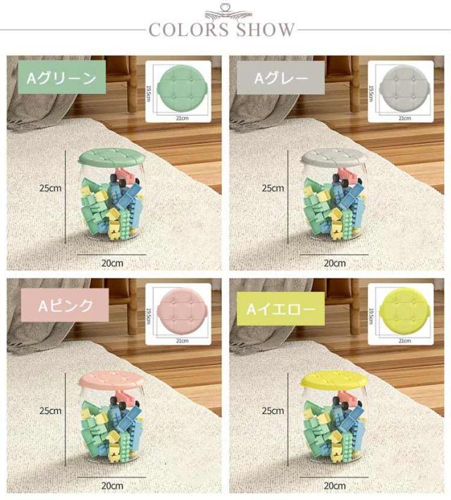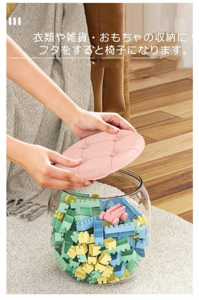 収納スツール 座れる 2個セット 小号 スツール 収納 収納ボックス フタ付き 積み重ね スタッキング おしゃれ チェア 椅子 イス オットマン かわいい 丸 丸型 背もたれなし 子ども ぬいぐるみ おもちゃ 衣類 小物 クリア 透明 可愛い